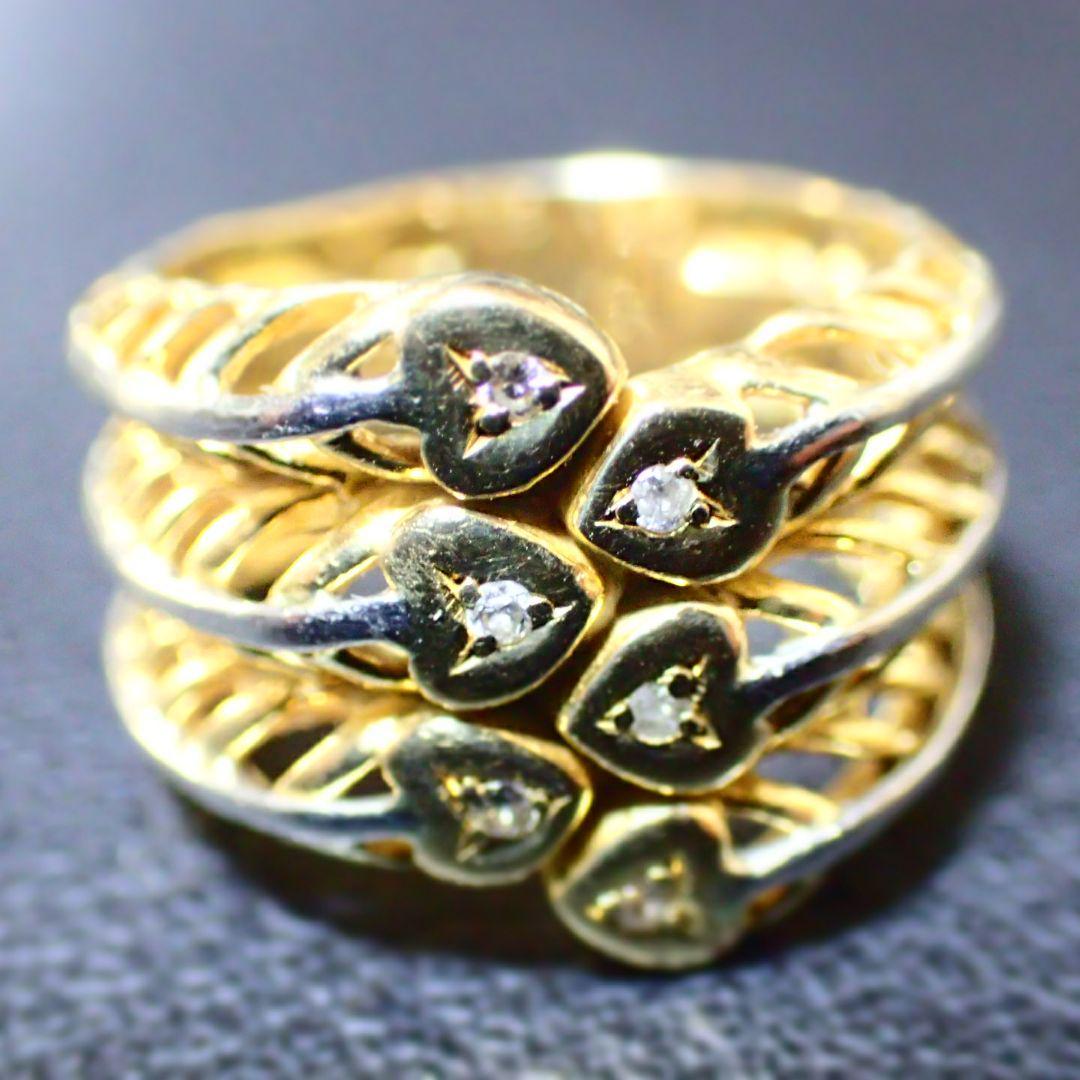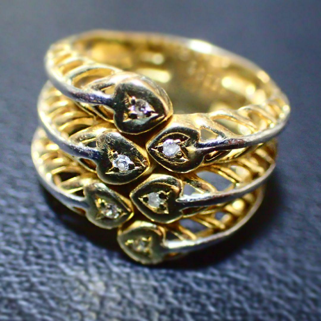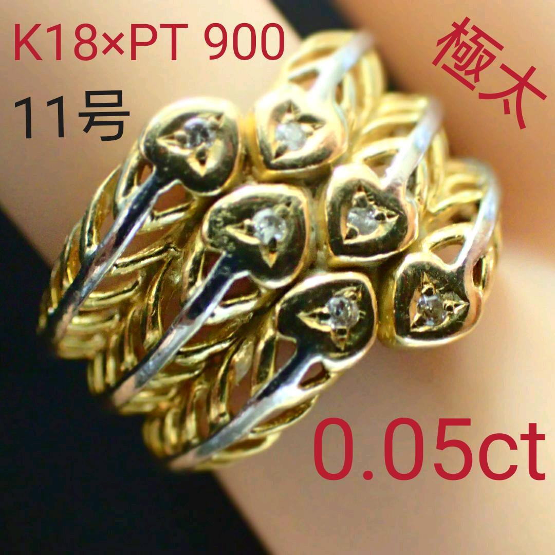 ◎超極太◎*レア*K18×PT900/ハート型ダイヤモンドリング/ダイヤ:0.05ct /サイズ:11号/総重量:8.0g【磨き済】