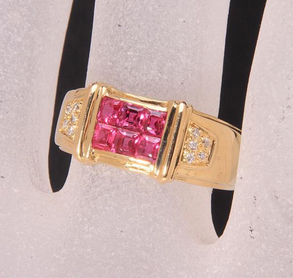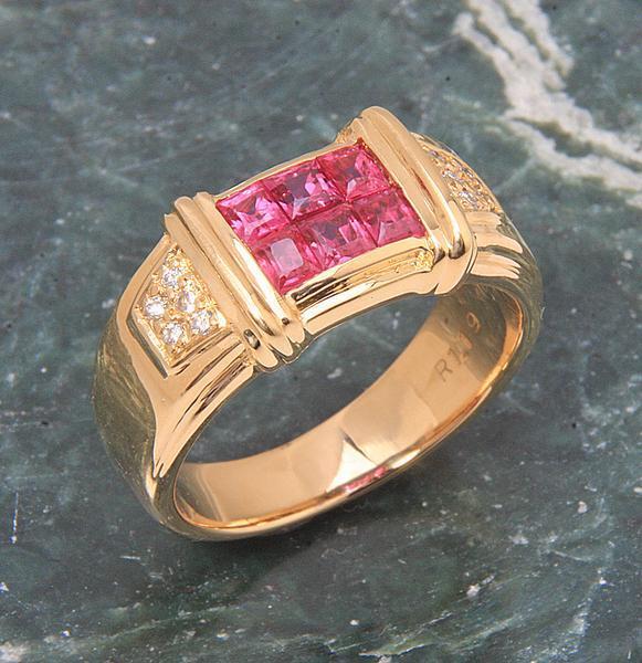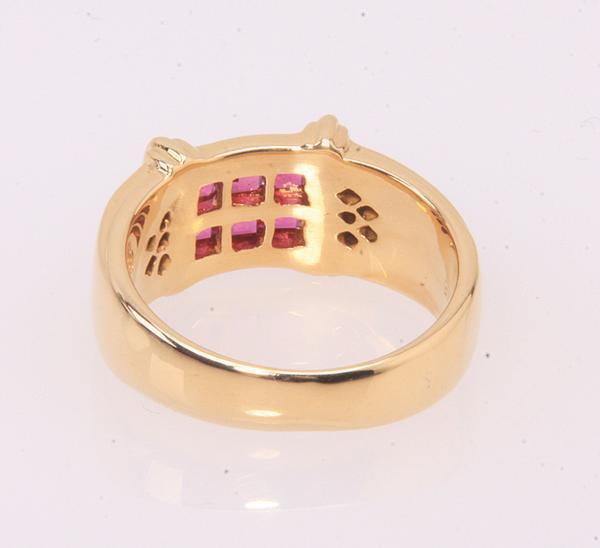 透明感があり鮮やかな色味が揃ったルビーが留められています。