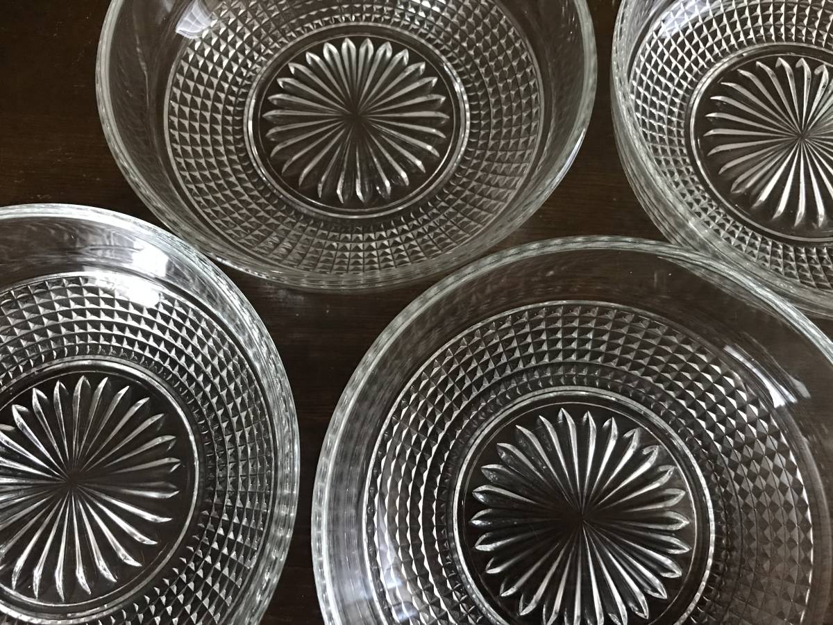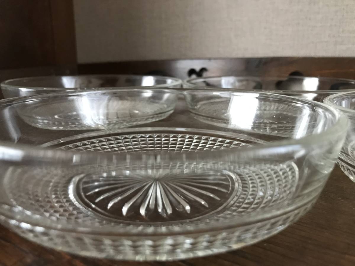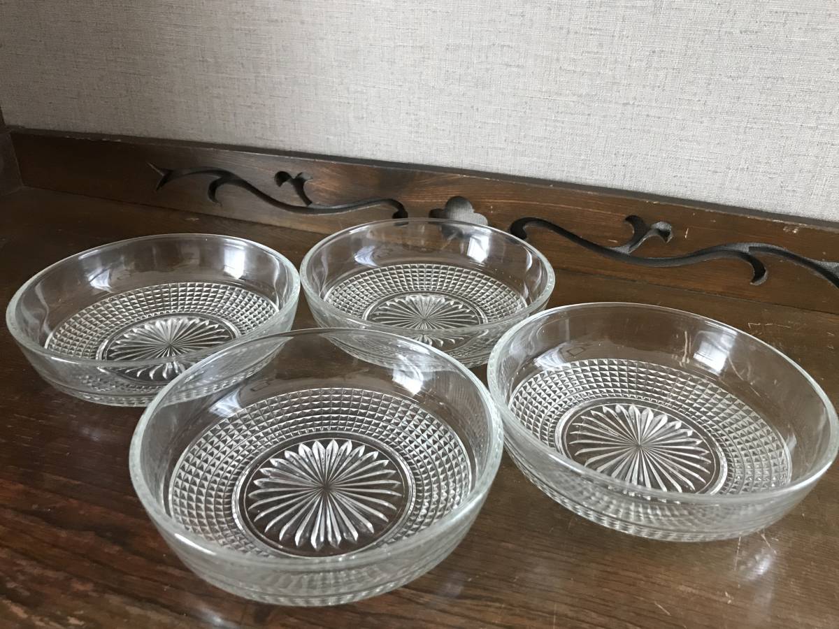 昭和レトロ食器 プレスガラス Press glass サラダ皿 デザート皿 モダン ガラス 4皿セット