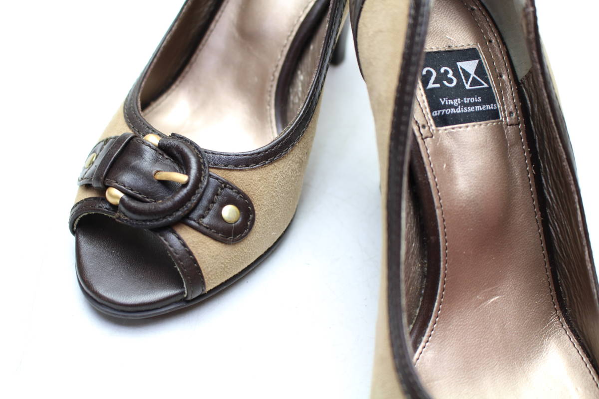 ○送料無料○美品 23区 本革&ヌバックオープントゥパンプス 22 ○B16 | ||||