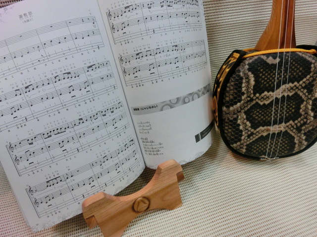 ■三線は、ケースに仕舞うよりも三線立てに立てた方が練習もしやすく、特にヘビ本皮だとケースに仕舞いこんでしまうと皮が破れやすくもなります。