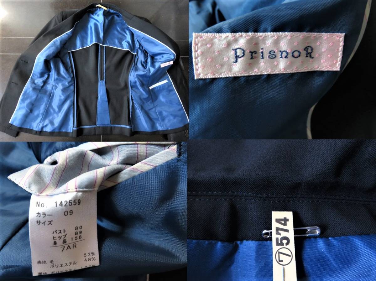 ■新品同様上質美品【PrisnoR】高級ブラック3点セットスーツ7号S 就活スーツブラックスーツ パンツスーツ s755