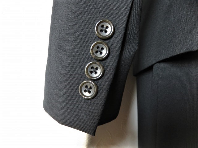 ジャケットは2つボタン、背抜き裏地、内ポケット付き。
