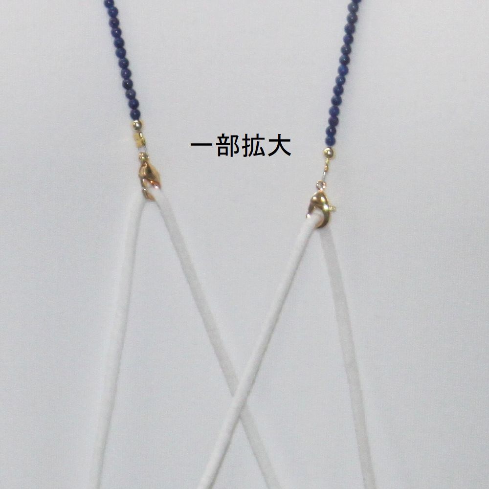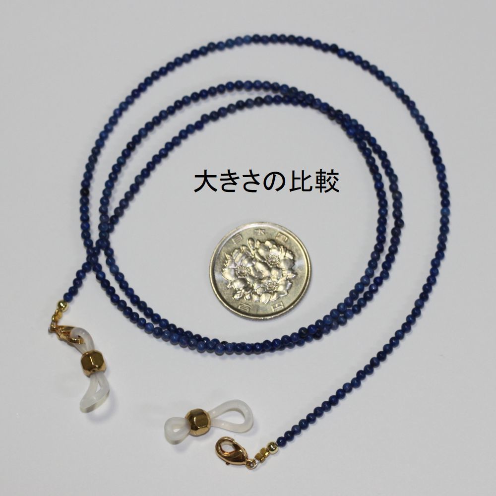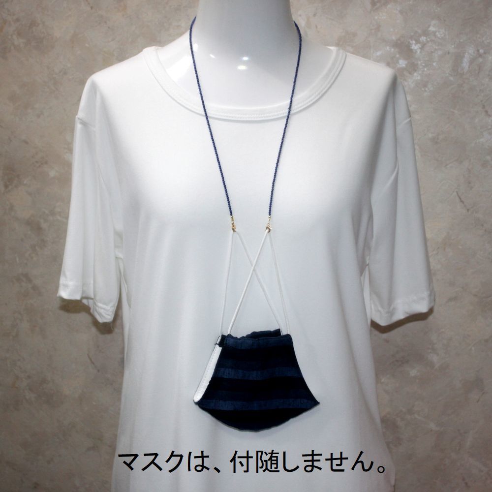 マスクホルダーorメガネチェーンorネックレス、 ラピスラズリ約2.2mm 長さ約63cm+シリコンパーツ マスクの置き場所に困らないオシャレに使えるマスクホルダーです。 ネックレス・メガネチェーン兼用に使えます。 金具はメッキです。