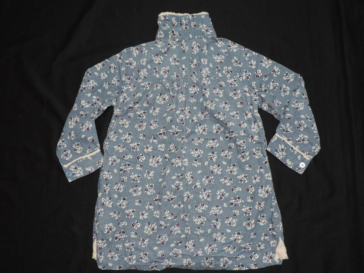 ☆ハッシュアッシュの花柄プリントブルー系コーデュロイ素材ワンピース☆110センチ☆