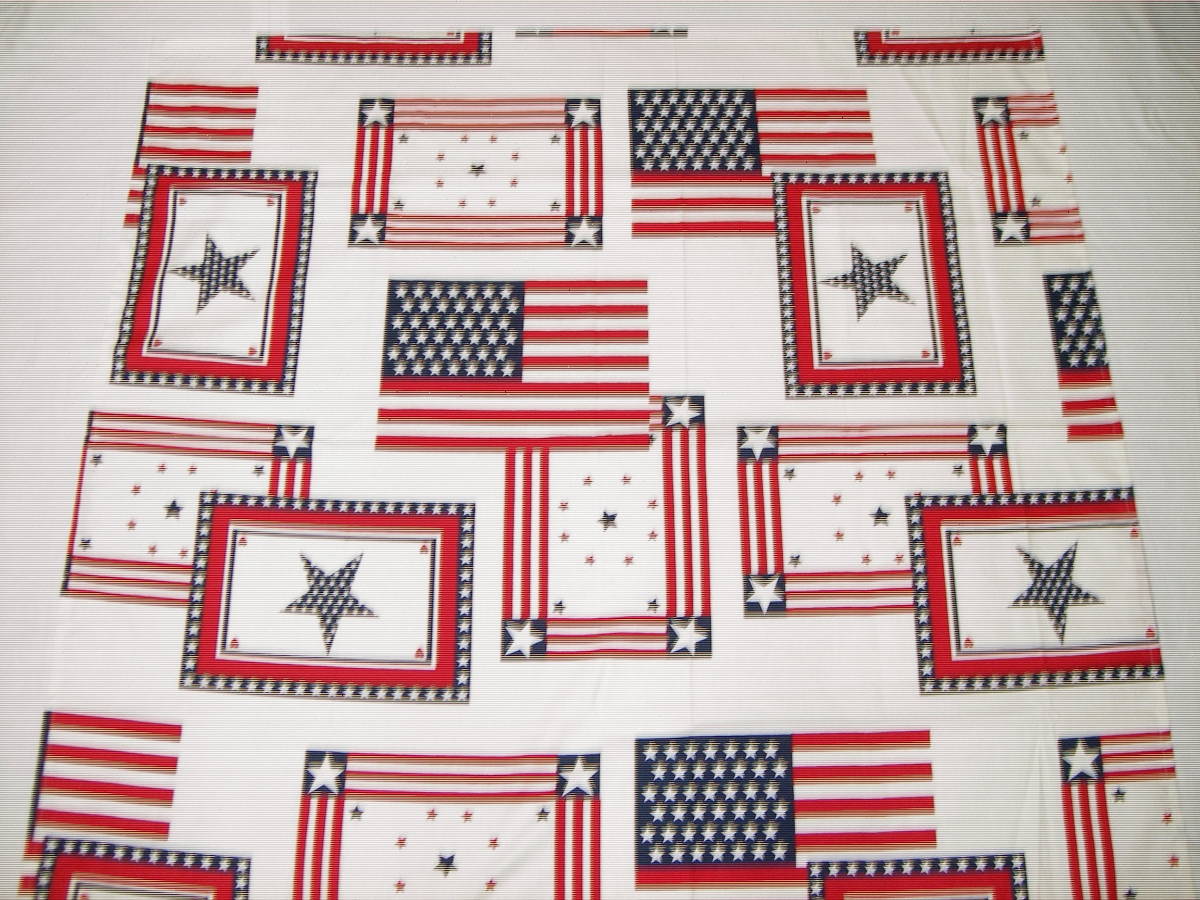 手作り、綿100%、90㎝の風呂敷、星条旗デザイン、生成りに赤と紺