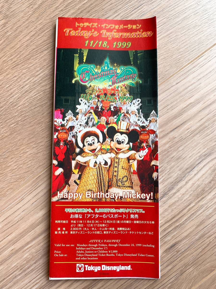 ◆TDL東京ディズニーランド Today トゥデイ 1999年11月18日 ミッキーバースデー◆