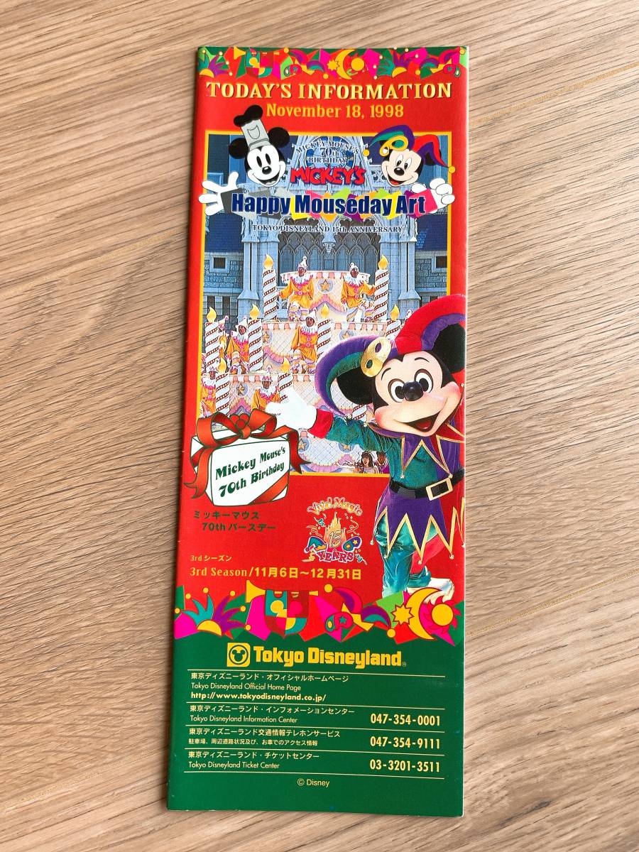 ◆TDL東京ディズニーランド15周年 Today トゥデイ 1998年11月18日 ミッキーバースデー◆