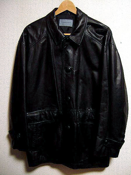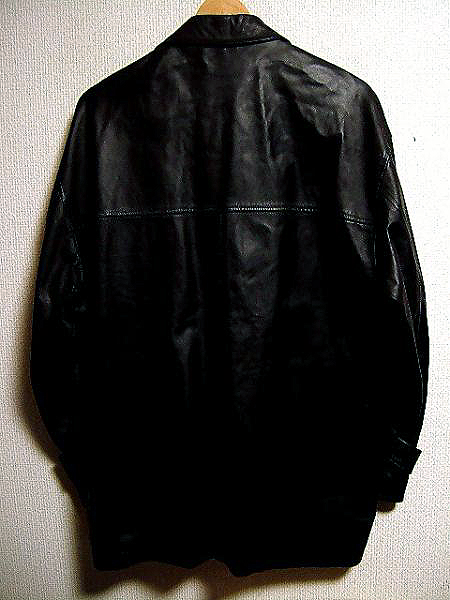 TOMSLABO 上質リアルレザーコートです。◆表 牛皮革 裏地 キュプラ100% 色は黒です。永く使えるアイテム!◆サイズはLで着丈約77.5cm・肩幅約55cm・袖丈約55.5cm・身幅約60cmです。◆USEDです。後部襟下辺りに線状の傷が御座います。他レザーにヤレ感無く状態良好です!◆