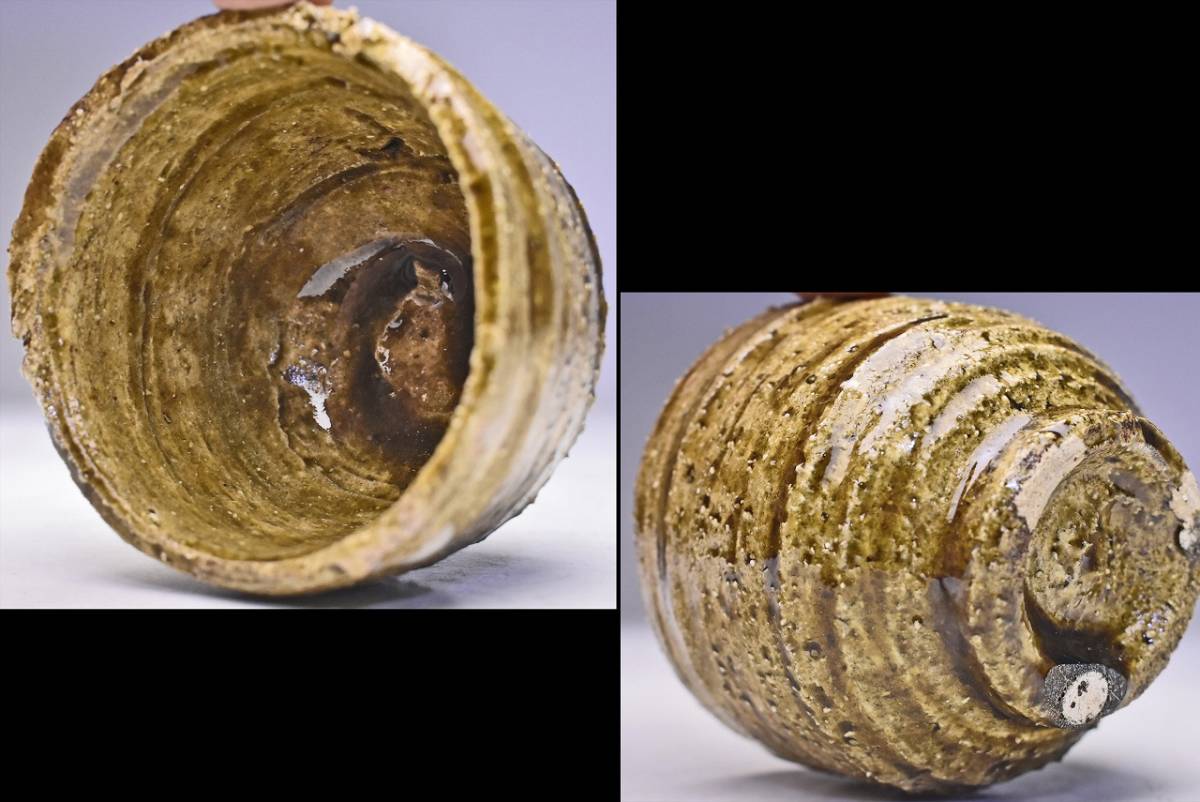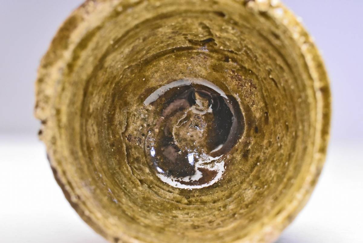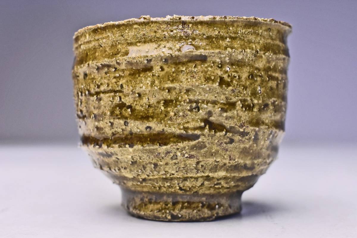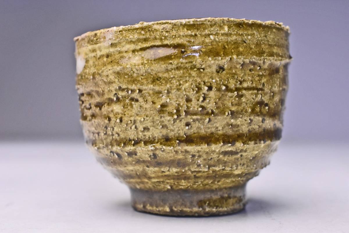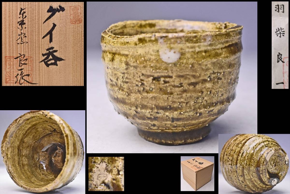 羽柴良一 ★ 伊羅保風ぐい呑 ★ 共箱 栞 ★師:日根野作三 ★ 大振りで釉景の良い逸品 ★ 酒器 ★