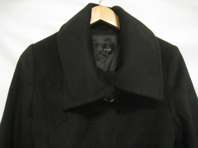 ■ブランド・商品名:Le souk ルスーク アウター 上着 コート ひざ丈 黒 ブラック サイズ36 毛混 リボン付き