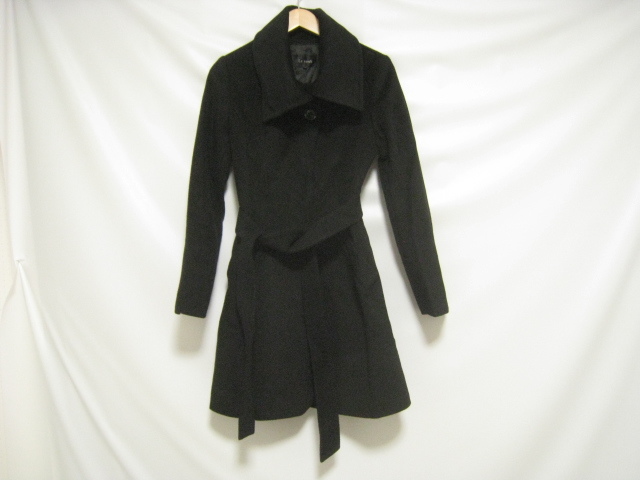 Le souk ルスーク アウター 上着 コート ひざ丈 黒 ブラック サイズ36 毛混 リボン付き