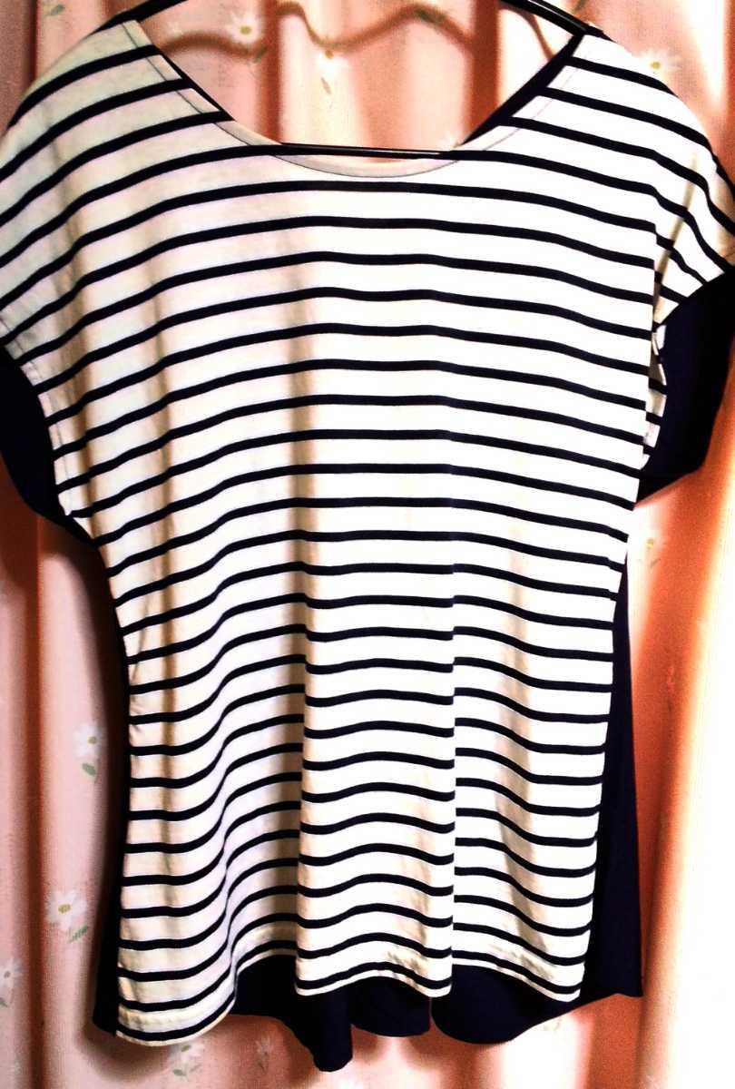 ☆前はさらっと素材のブラウス風*後ろはボーダーTシャツのようなとっても素敵なトップスです☆