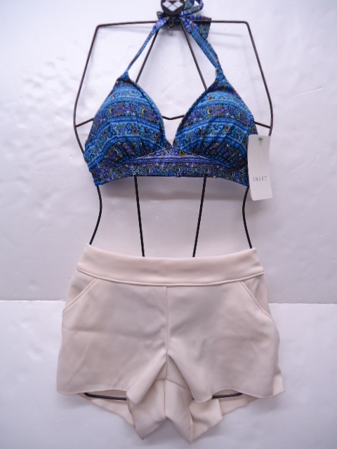 【KCM】MATO-41-9M■新品未使用品■【INLET】レディース 水着 ビキニ キャミ パンツ 4点セット 9M ブルー系 体形カバー