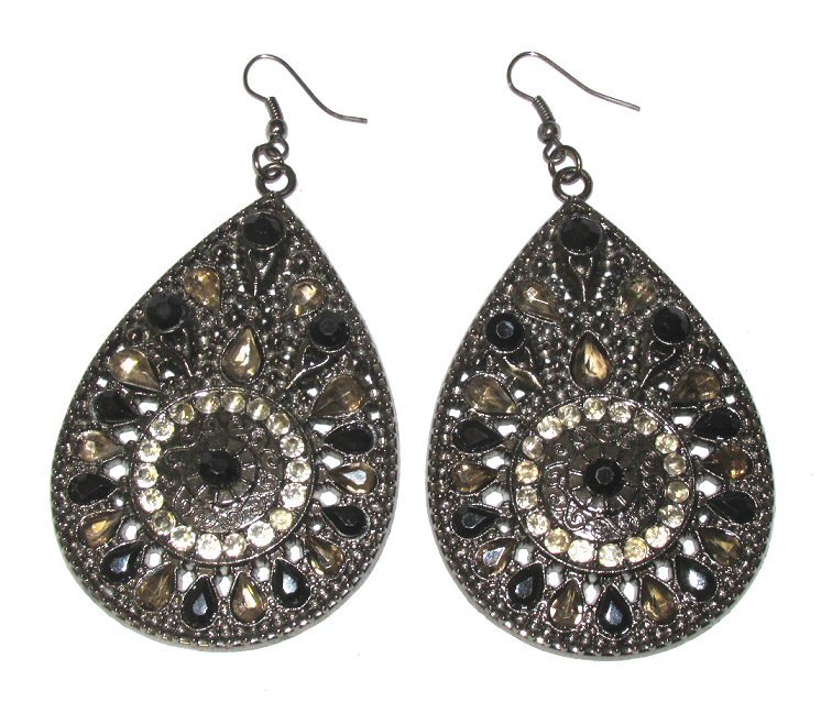クリスタル×ブラックストーン×シルバー・ティアドロップ★ピアス
