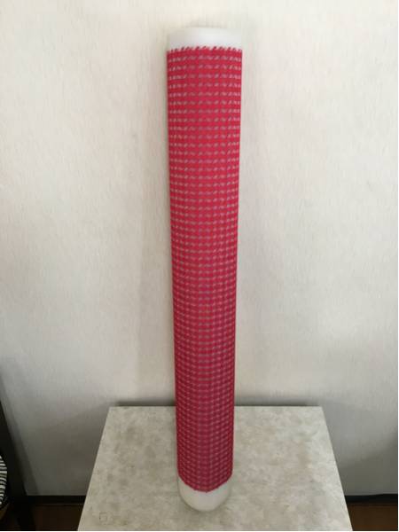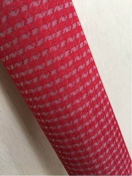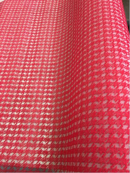 日本製のレース刺繍入りナイロンチュール生地、刺繍幅85cm×1m、お色は白/赤になります。