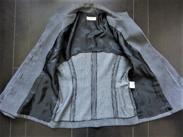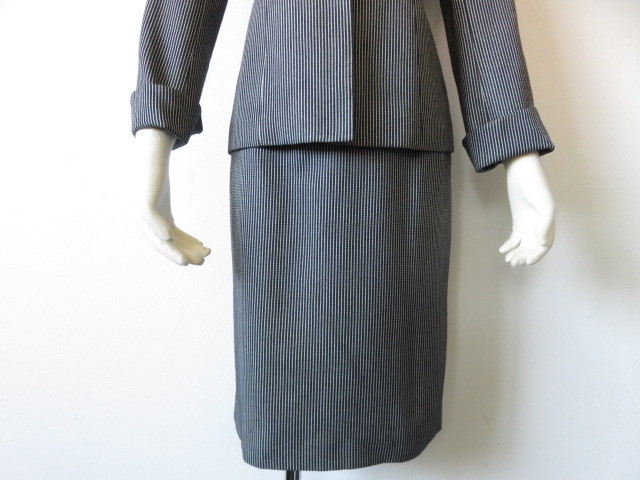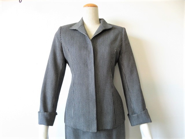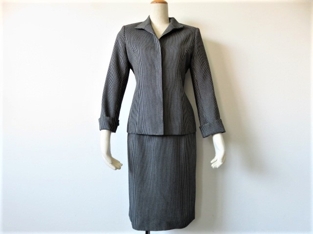 ■新品同様 上質美品【V.O.M】モノトーン スーツ【38】9号 M カジュアル ストライ スーツ 通勤 通学 ビジネススーツ s484