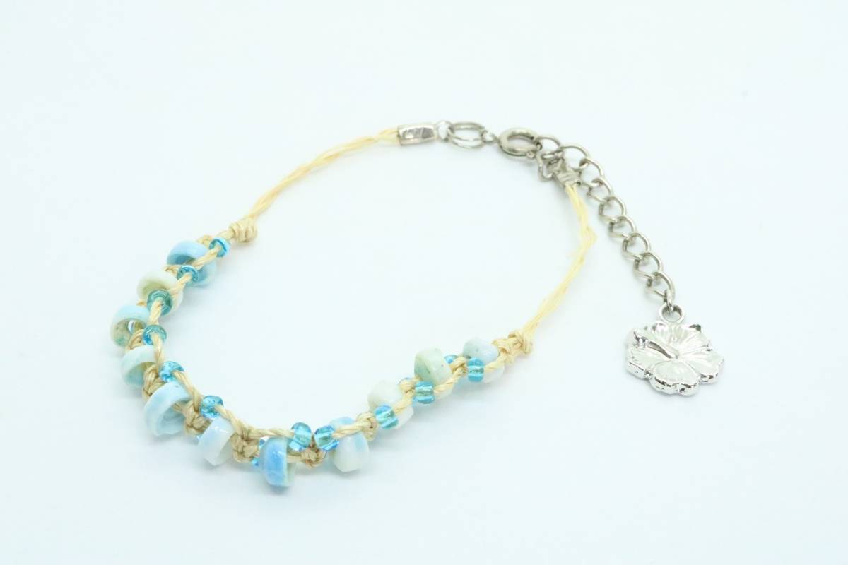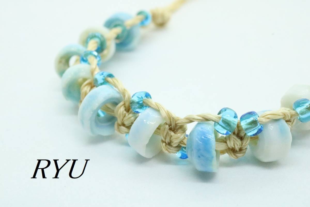 ■ 【U352】RYU リュウ シェル 貝 編み込み ブレスレット ブルー【送料全国一律198円】
