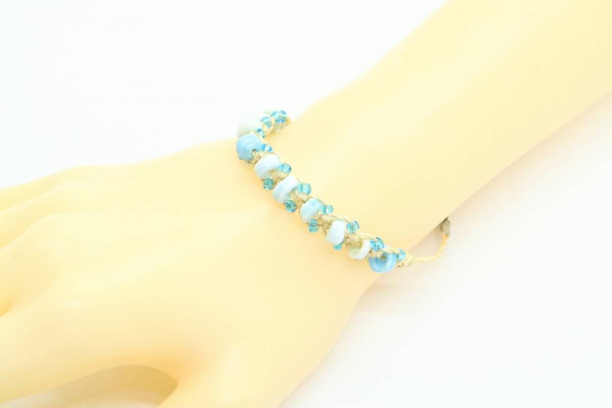 【U352】RYU リュウ シェル 貝 編み込み ブレスレット ブルー【送料全国一律198円】