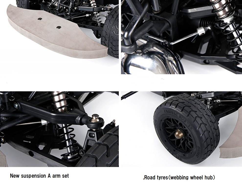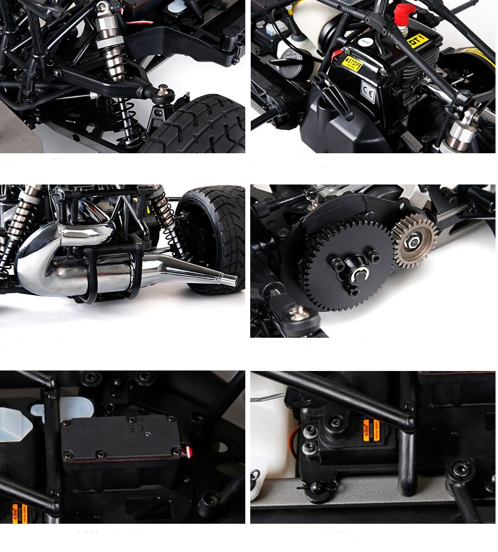 ROVAN Rofun Baja5FC クリアボディー<完成品> ROVAN SPORTS 日本代理店 CRAZYBRAIN 出品 4WDや45ccエンジンはいらないという人にお勧めするモデルになってます。 こちらはクリアボディーなのでご自身でお好きなカラーを塗ることができます。 ・・・御注意・・・ 本格的な走行の前にエンジンの慣らしを行ってください。必ず本体バッテリ―や送信機をオフにして、エンジンを点火。 点火後BAJA本体を持ち上げタイヤが接地出来ない様にセット、15分から20分アイドリングさせてください。エンジンはバッテリー充電しなくても点火します。 Bajaエンジン燃料はホームセンターなどで販売される草刈り機・チェーンソーの2サイクル燃料もご使用可能です。 初めての方はエンジン点火方法などメールでお問い合わせください。 RTR配送品 <RTRとは? レディー ツー ラン・・・走る為のすべての部品が揃ったセット> 1/5Baja 本体(受信機・サーボ)送信機 専用ガソリンタンク 取扱説明書 その他 FEATURES