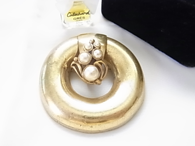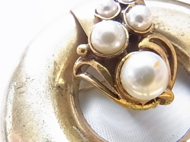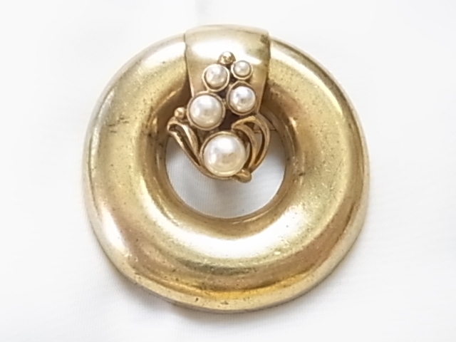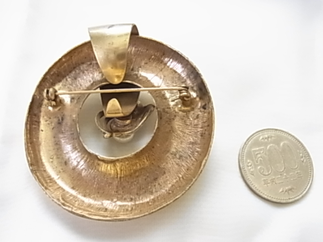 訳あり安価 2way イミテーションパール付き ゴールドカラー 金色 直径約6センチ 重厚感 ペンダントトップ ブローチ▽