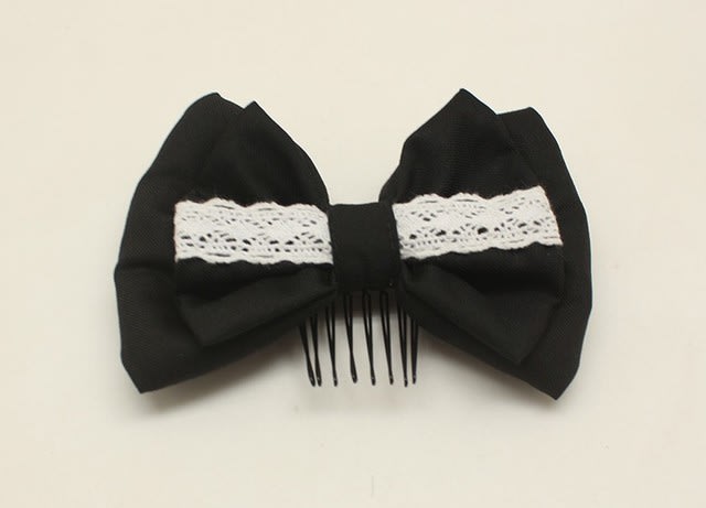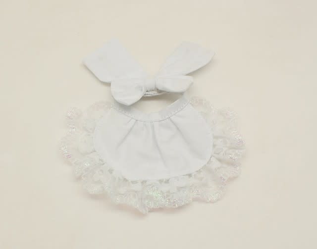 背中の部分にマジックテープがついており、着脱しやすくなっております。白いリボンの付いたエプロンと、黒いリボンの髪飾り付きです。