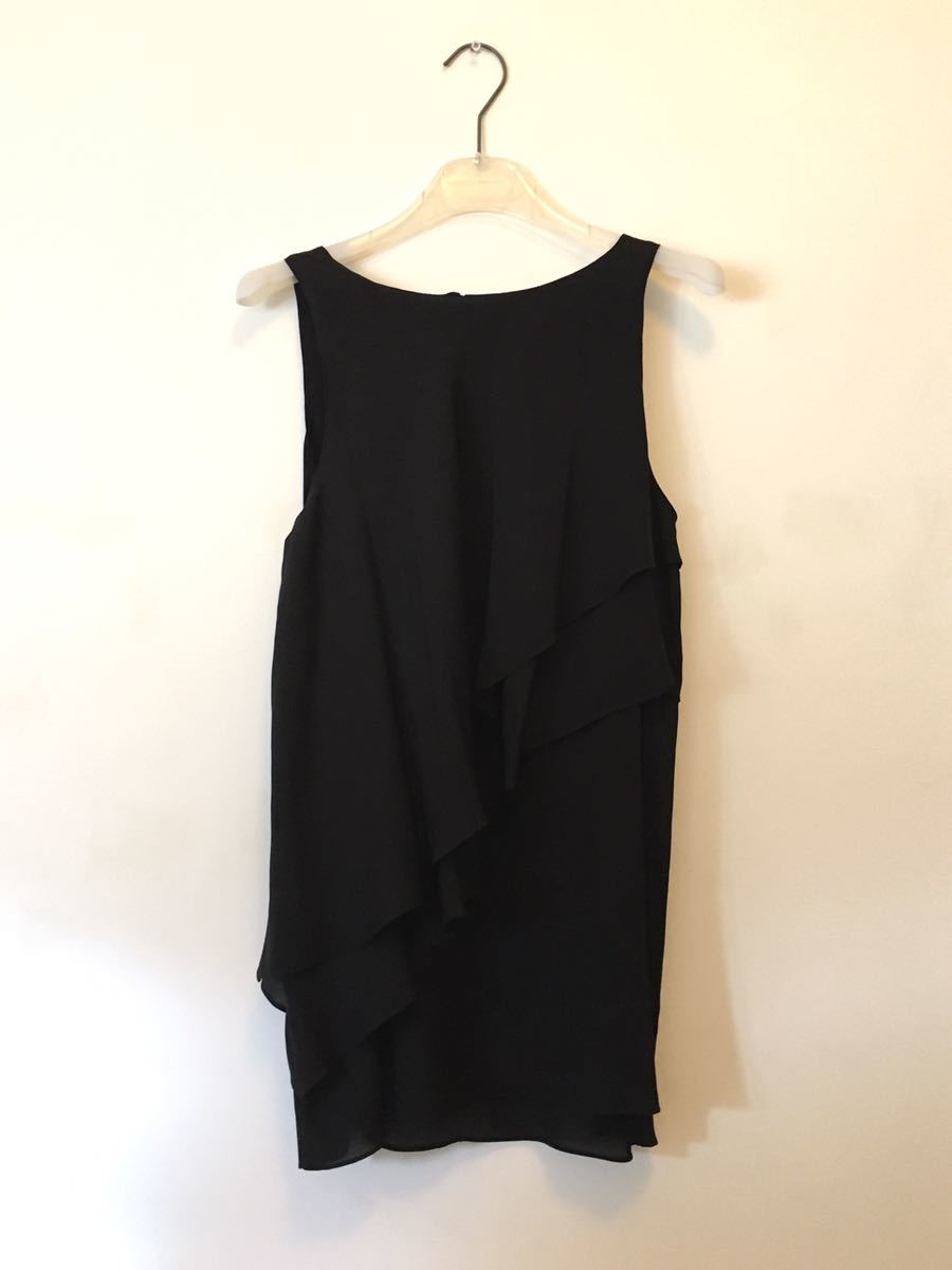 ニューヨークのラグジュアリーブランドの「デレク・ラム 」。日本でも高級セレクトショップでお取り扱いがあります。こちらは、パーティーウェアにもなるブラックのノースリーブトップス。アシンメトリー に斜めにデザインされたフリルがモードな印象。カーディガンやジャケットを羽織れば、高級カジュアルスタイルに。試着のみの美品ですが、少し前のものですので、安く出品いたします。