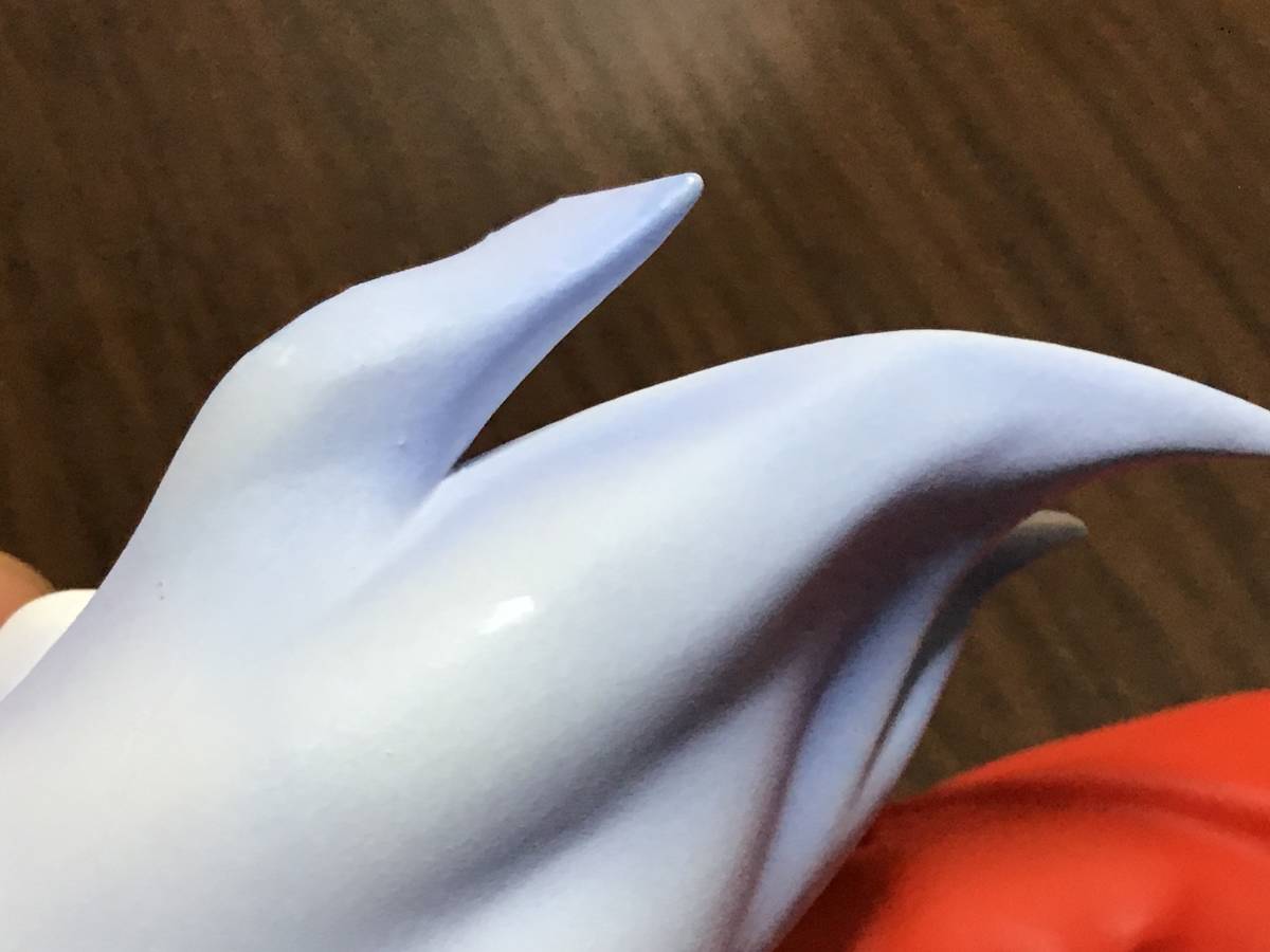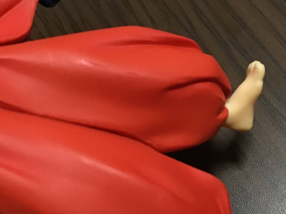 フィギュア本体は大きな破損はございませんが、台座のスレ・くすみ汚れ、脚・髪の毛の部分にケースに収納されていた圧迫されたテカリや、袖の部分にスレくすみ汚れやくすみハゲ・製造ムラの粒跡等ございますのでご了承くださいませ。