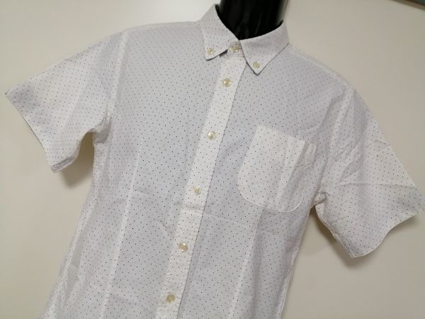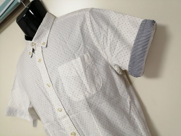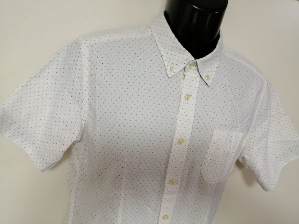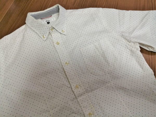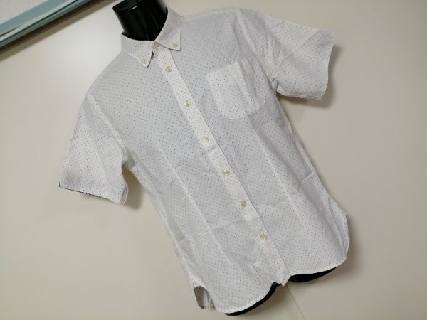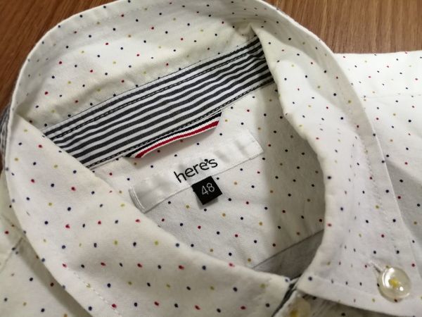 kkyj4042 ■ here's ■ ヒアーズ シャツ トップス ボタンダウン 半袖 ドット コットン 白 オフホワイト 48 M