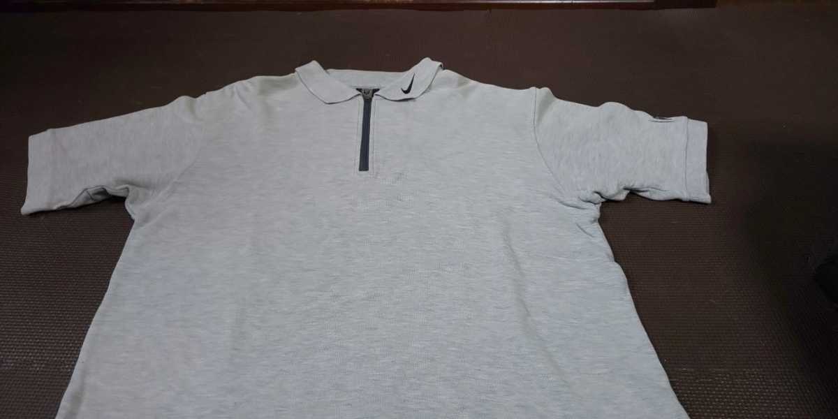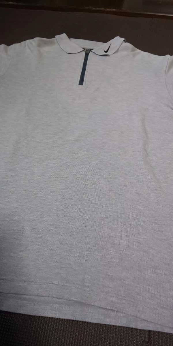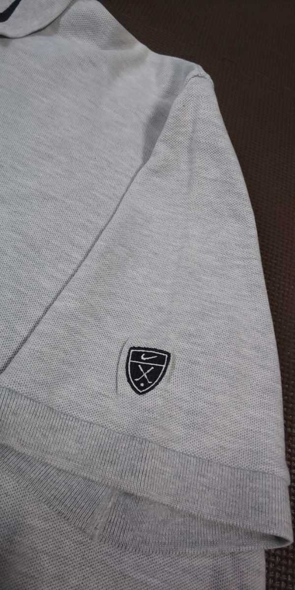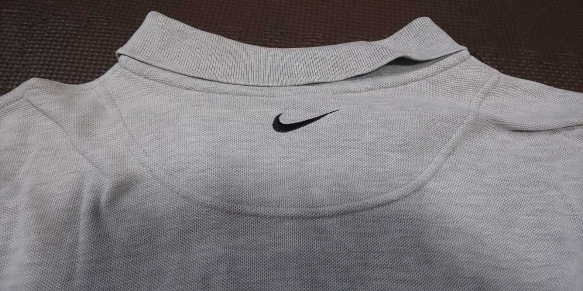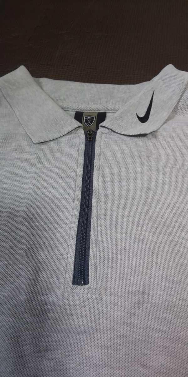 NIKEGOLFグレー、ロゴ黒(刺繍)半袖ストレッチトップス