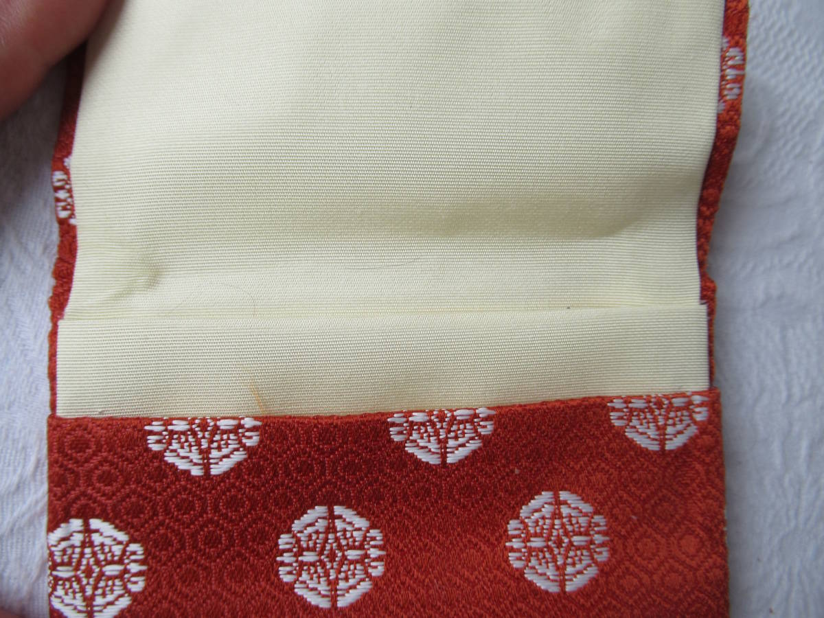 手作り 金襴カードケース 名刺入れ 保険証入れ (柿色丸)