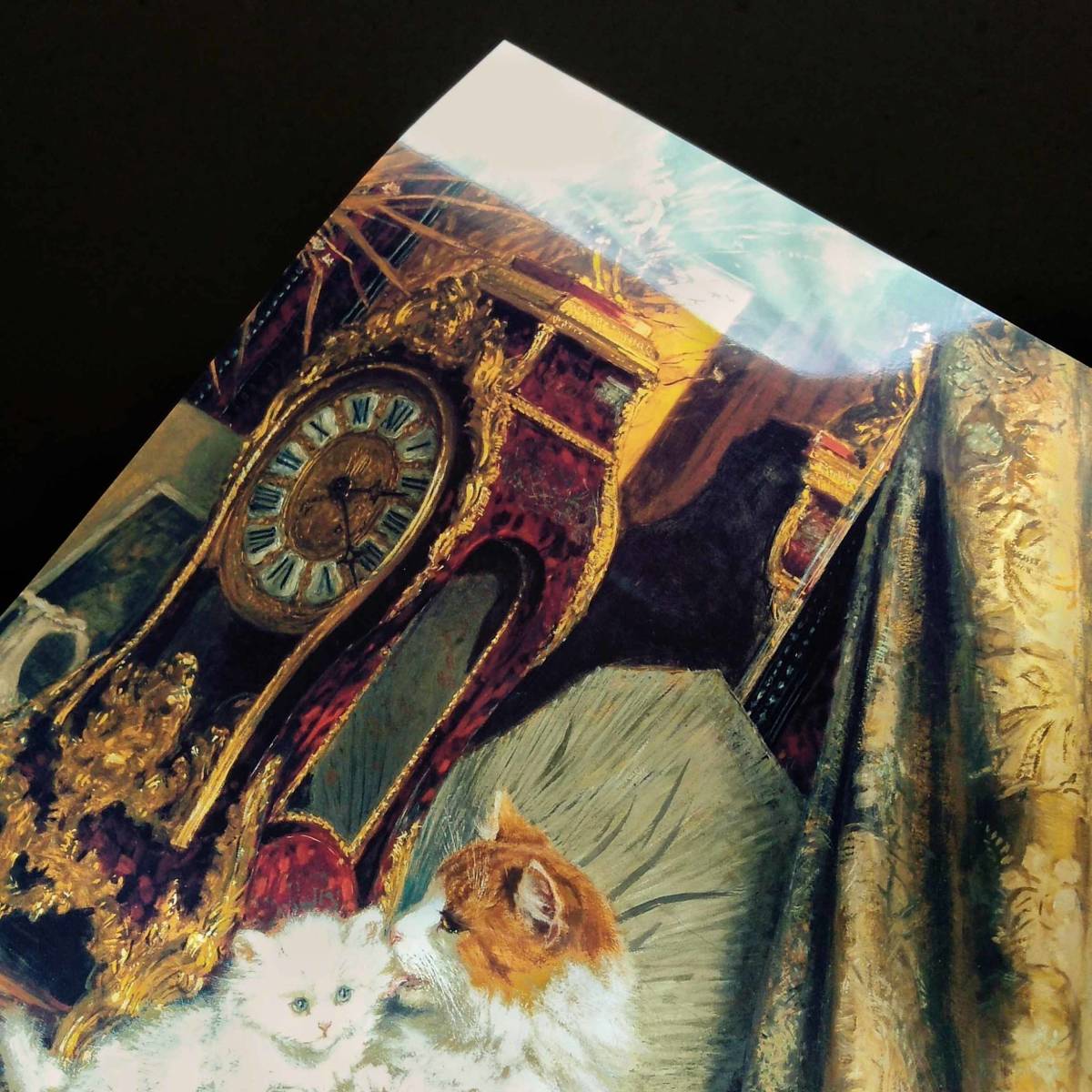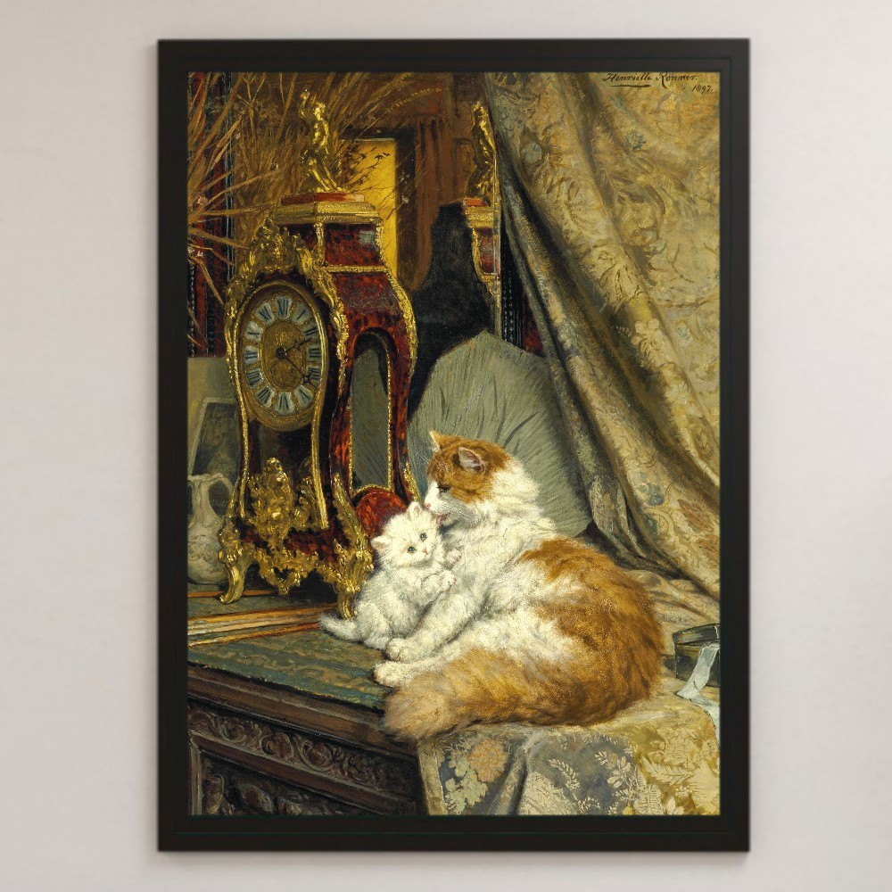 アンリエット・ニップ『置き時計と母猫と子猫』絵画 アート 光沢 ポスター A3 バー カフェ リビング ビンテージ クラシック インテリア