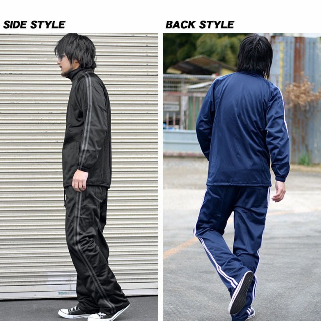 サイドの二本ラインがスポーティーな雰囲気を醸し出し、着回し度120%の万能ジャージ上下セットです。