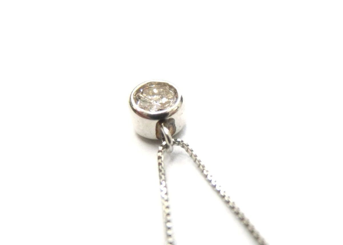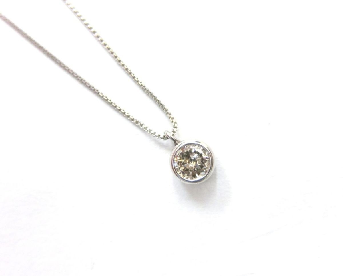 【詳細情報】 | 簡易クリーニング済みです。小キズ、クスミがあり、トップの丸環付け根部分にヤケ・変色が見受けられますが、まだまだお使いになれるお品物です。ダイヤには、若干のブラウンカラー、内包物があります。内包物は、肉眼での発見は困難です。 |