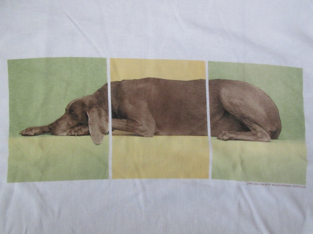 90's William Wegman FOTOFOLIO LYING DOG フォト Tシャツ M 白 ウィリアム ウェッグマン ワイマナラー犬MAN RAY マン レイ 芸術ART美術館/