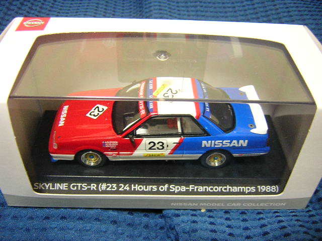 京商製、nissan箱、1988年スパフランコルシャン24時間レースに参戦したニッサンスカイラインGTS-R、23号車、A・オロフソン、A・グライス、W・パーシーのモデルカーです。外箱、ケース、本体ともに美品です。ミニカーは大量生産品のため、デカール等個体差が生じてしまうことをご理解のうえ入札願います。完全品をご希望の方は、入札をご遠慮ください。ゆうパックにて発送します。東京都内700円、東北・関東(東京都以外)・信越・北陸・東海は760円、近畿は870円、中国・四国は1,030円、北海道・九州は1,290円、沖縄は1,330円となります。まとめて落札いただいた場合は、別途連絡します。
