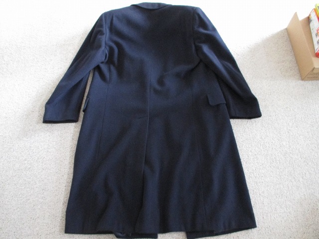 。ジョルジョ アルマーニロングコートです。色はネイビー サイズ 縦 約1m16,5cm 幅 約47cm です。ノークレームノーリターンでお願いします。もちろん本物です。素材はカシミア&ウールです。