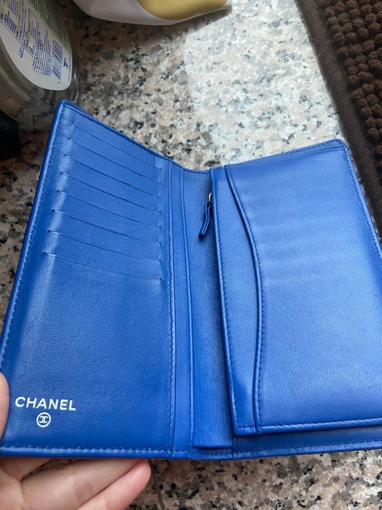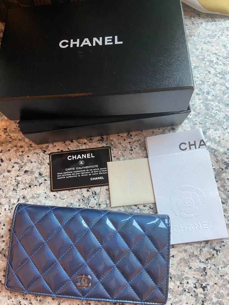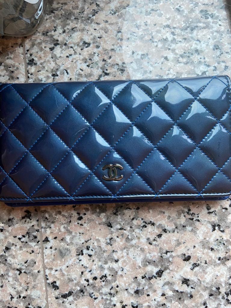 【極上品】CHANEL シャネル 2つ折り長財布 エナメル マトラッセ ネイビー ギャランティーカードなど付