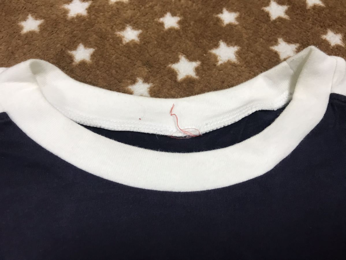 首回り少し汚れあり。中のタグに名前書いてあります。首のところのサイズタグ切ってあります。中古になりますのでNCNRでお願いします