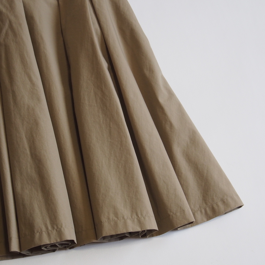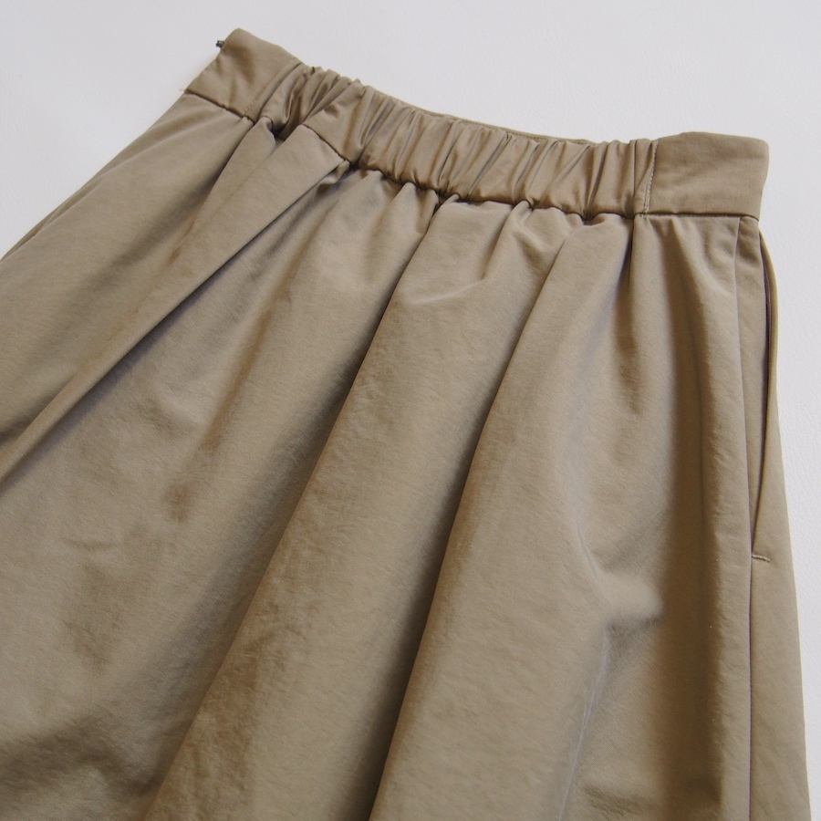 微光沢感のあるグログラン素材が上品な印象のフレアースカートです。 大きめにタックを施し、ふんわりとしたボリューム感がポイントです。 バックにはウエストゴムを使用し、穿き心地も楽ちんです。