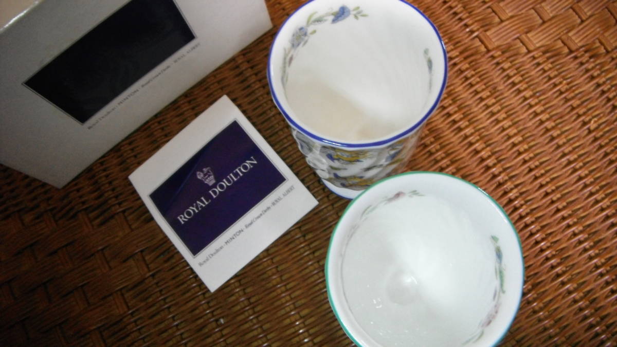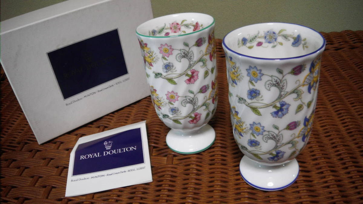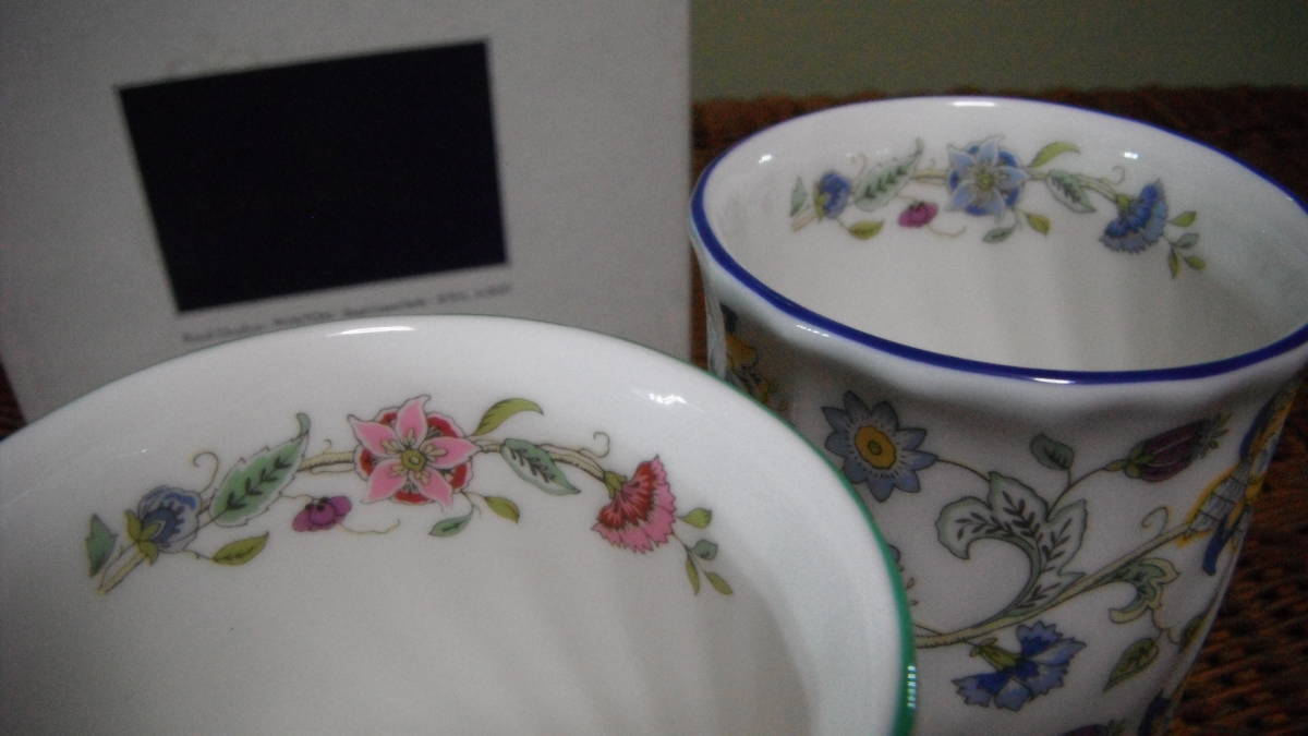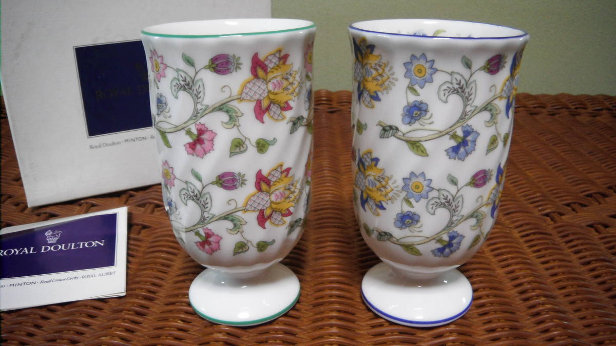 未使用 英国製 ミントン ハドンホール ペア ゴブレット タンブラー フリーカップ グリーン&ブルー サイズ約:口径7,8x高さ12,3cm 箱にダメージがありますのでご理解いただける方、ノークレームノーリターンでご入札お願いします。送料別途はヤマト運輸を予定しております。お支払方法はヤフーかんたん決済、よろしくお願いいたします。