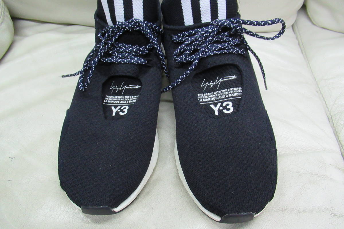 Y-3 yohji yamamoto 紺 3本ラインデザインスニーカー