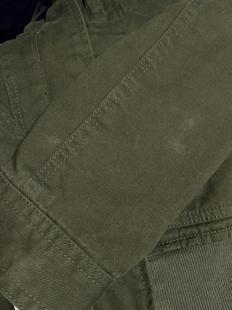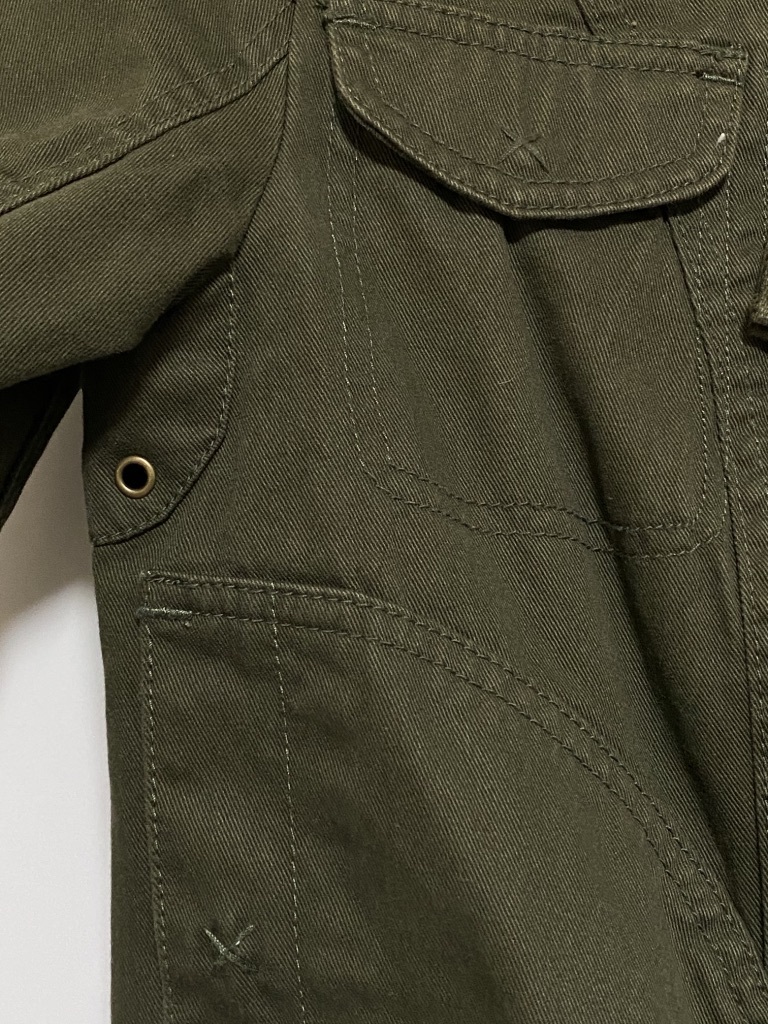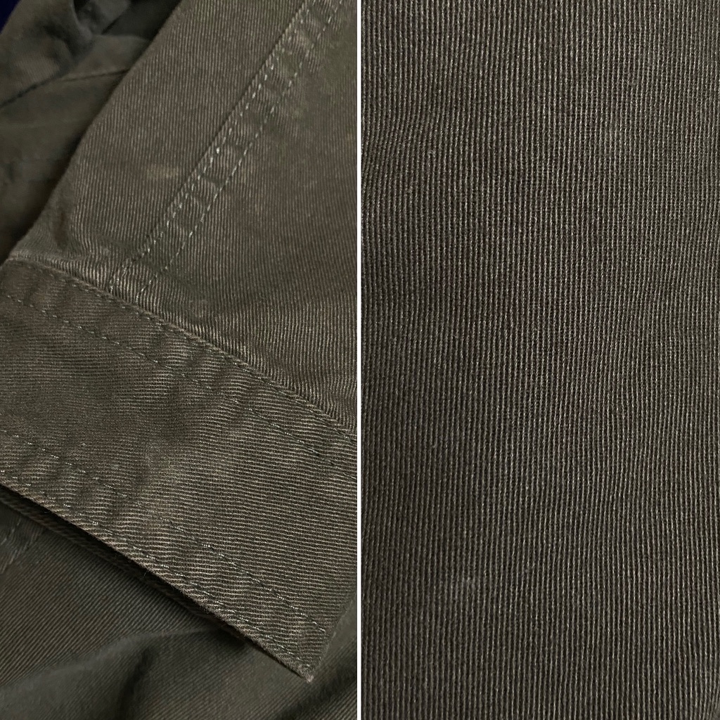 左袖と左ポケットにシミのような薄い汚れやテカリのようなダメージが数点見られ使用感があります。