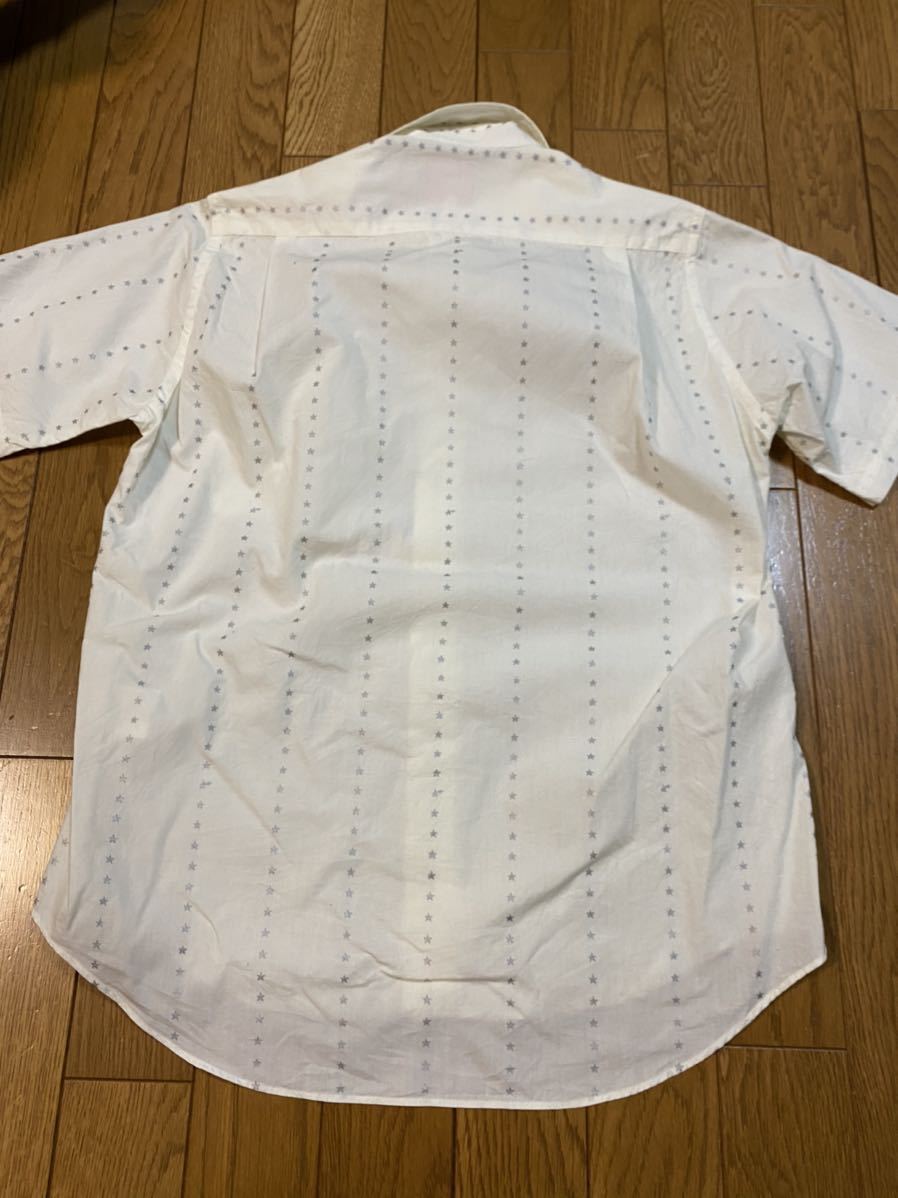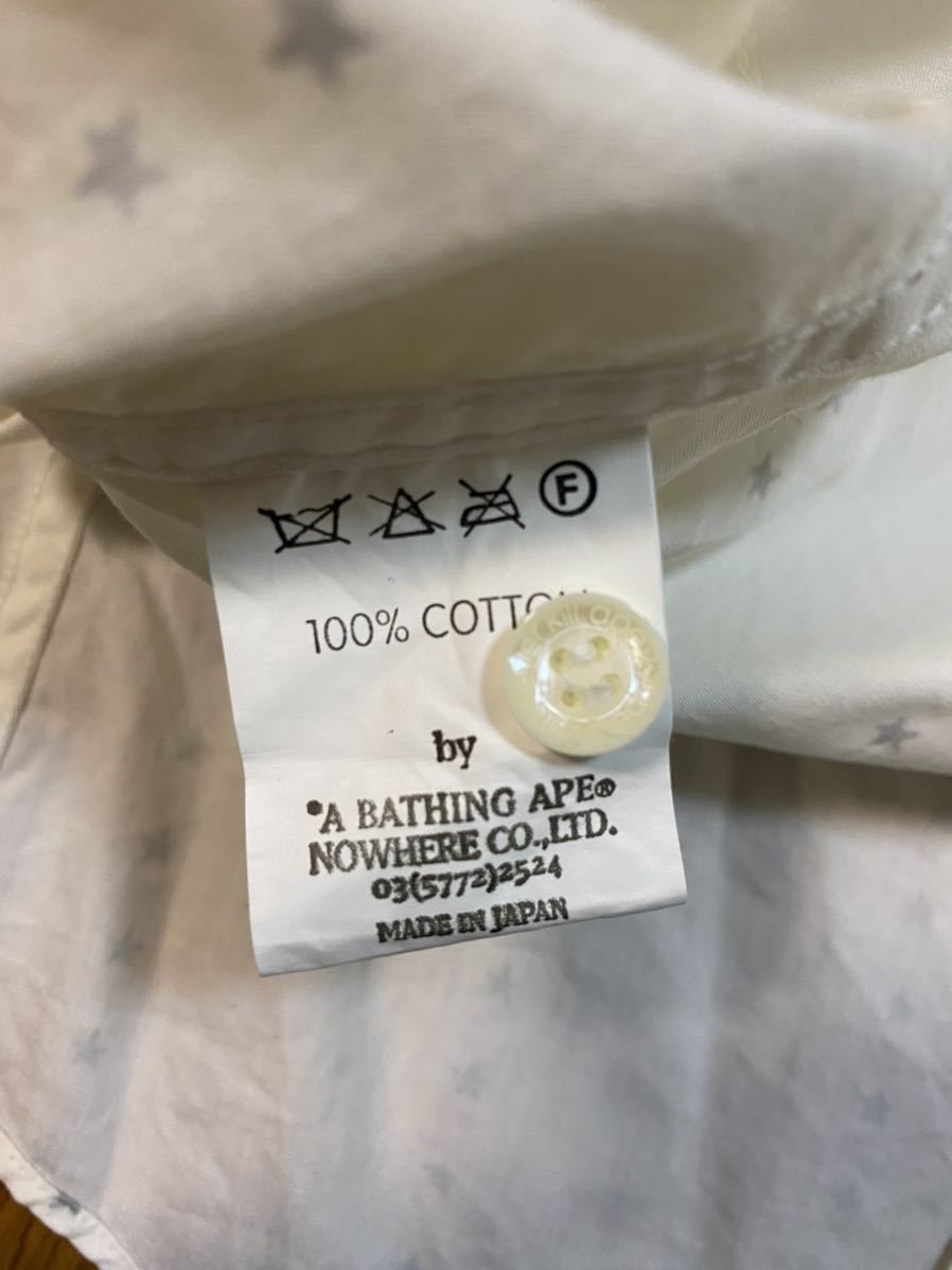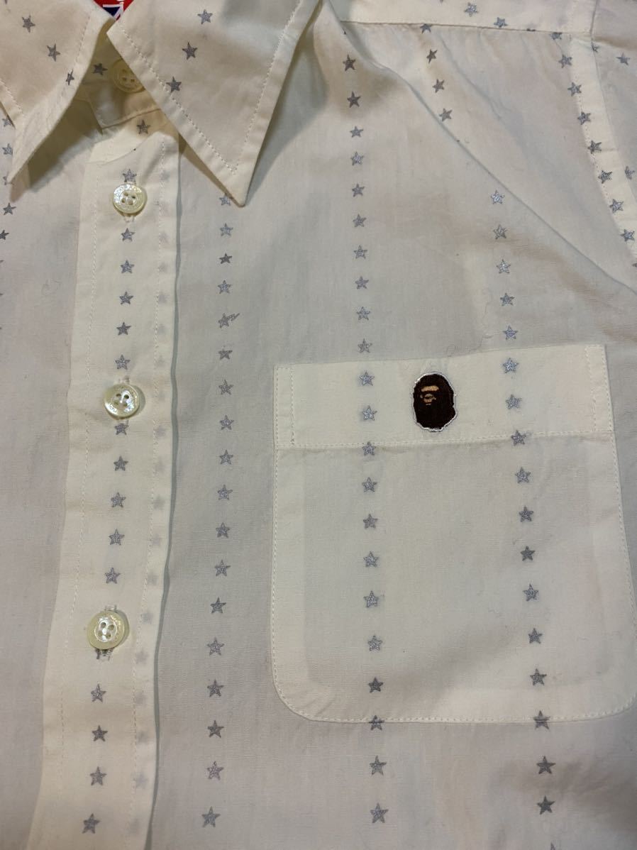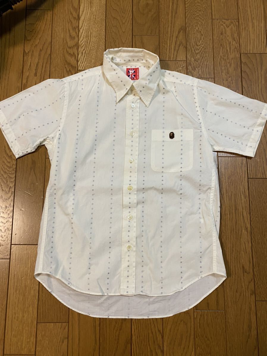 A BATHING APE■半袖シャツ■レディース■XS(肩幅37着丈67。裾はラウンドしているので一番長い部分です)■スターの間に所々BAPE STAが入っていてかわいいです。キッズ160くらいのこどももいけます■ご入札の際は自己紹介欄もご覧ください