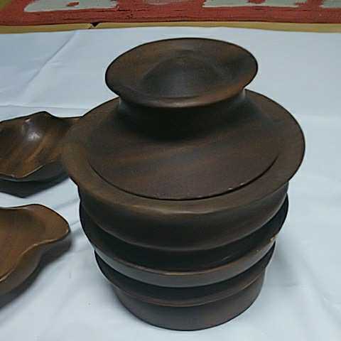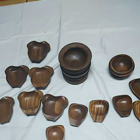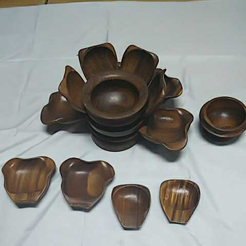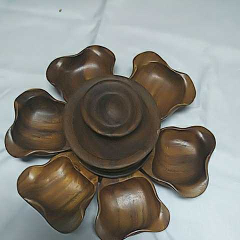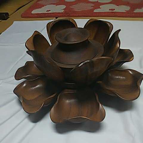 花形 回転菓子入れ アンティーク木細工 容器 手作り 木皿 2段