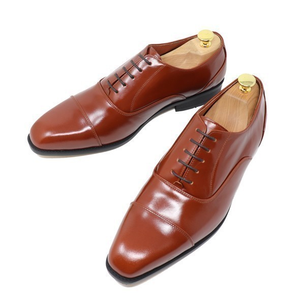 ハンドメイド メンズ 24cm 本革 スクエアトゥ ストレートチップ 内羽根 ビジネスシューズ マッケイ製法 靴 紳士靴 ライトブラウン 3001