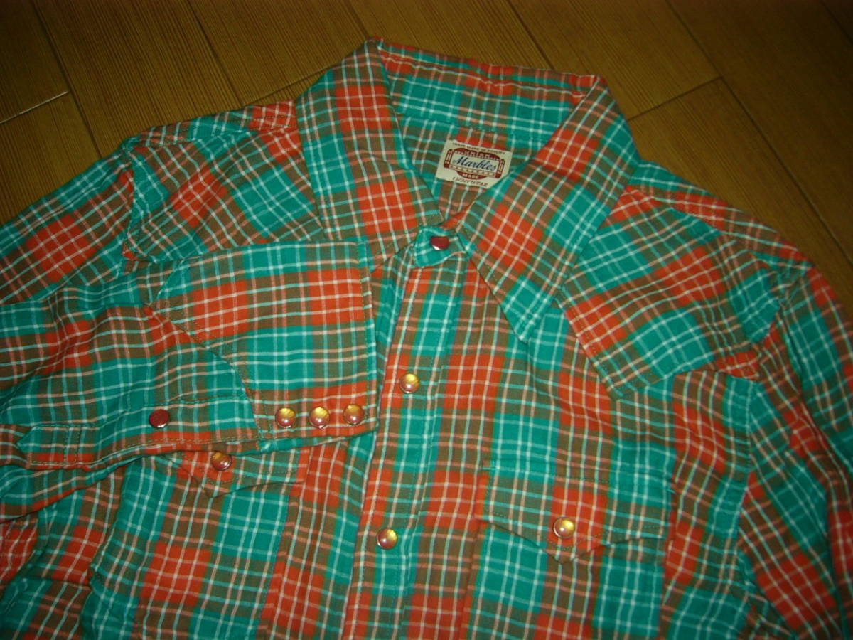 美中古 マーブルズ MARBLES ダブルガーゼ チェックシャツ M オ緑 / 長袖シャツ ウエスタン