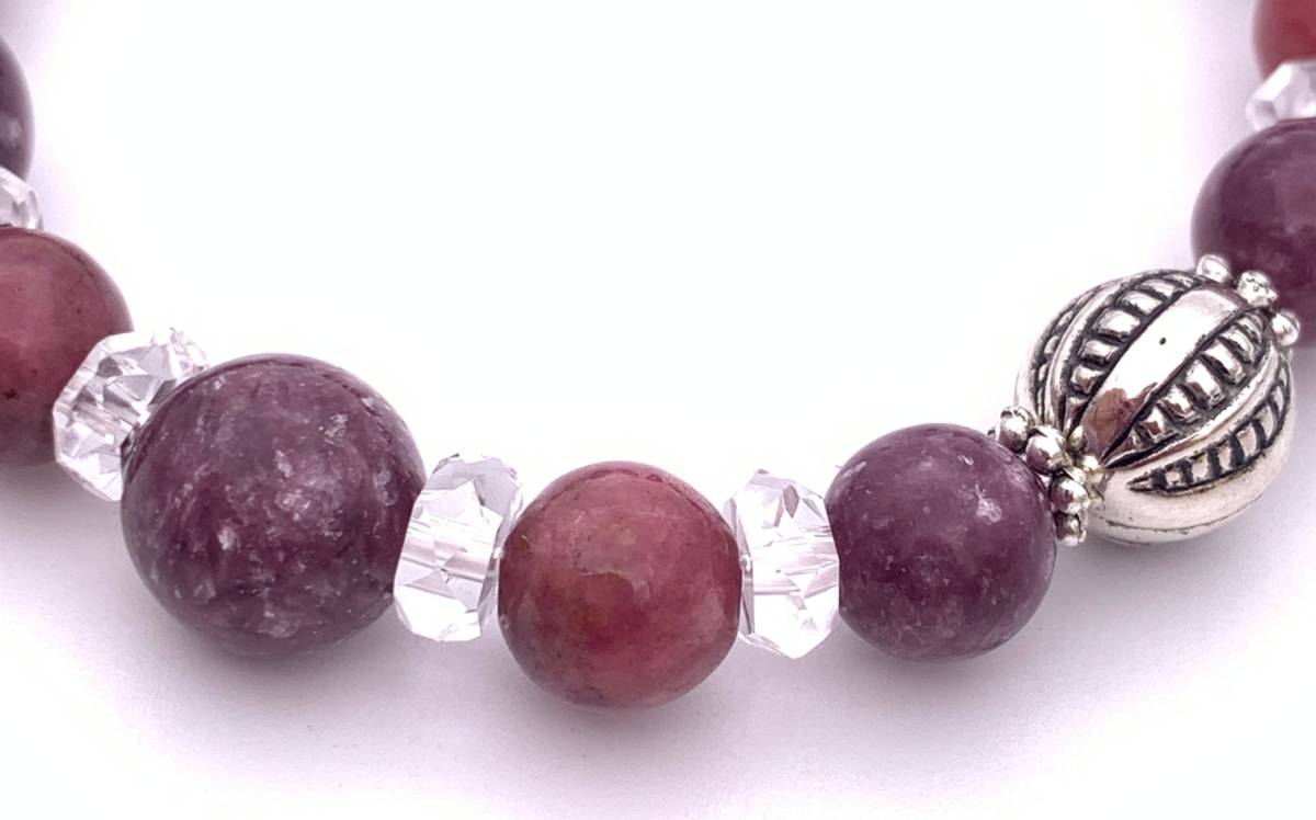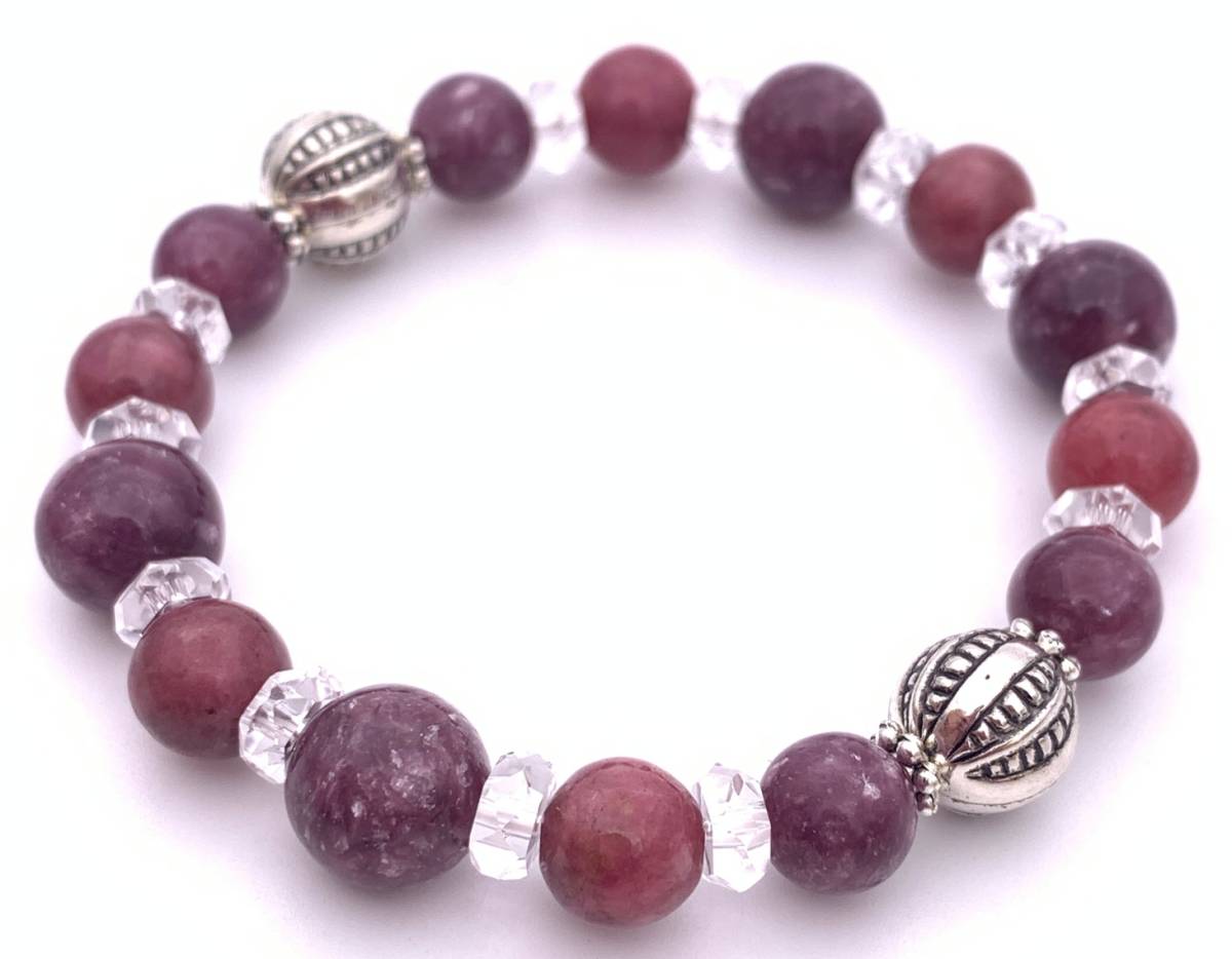 手作り!オリジナル★天然石レピドライト&ロードナイトのブレスレット