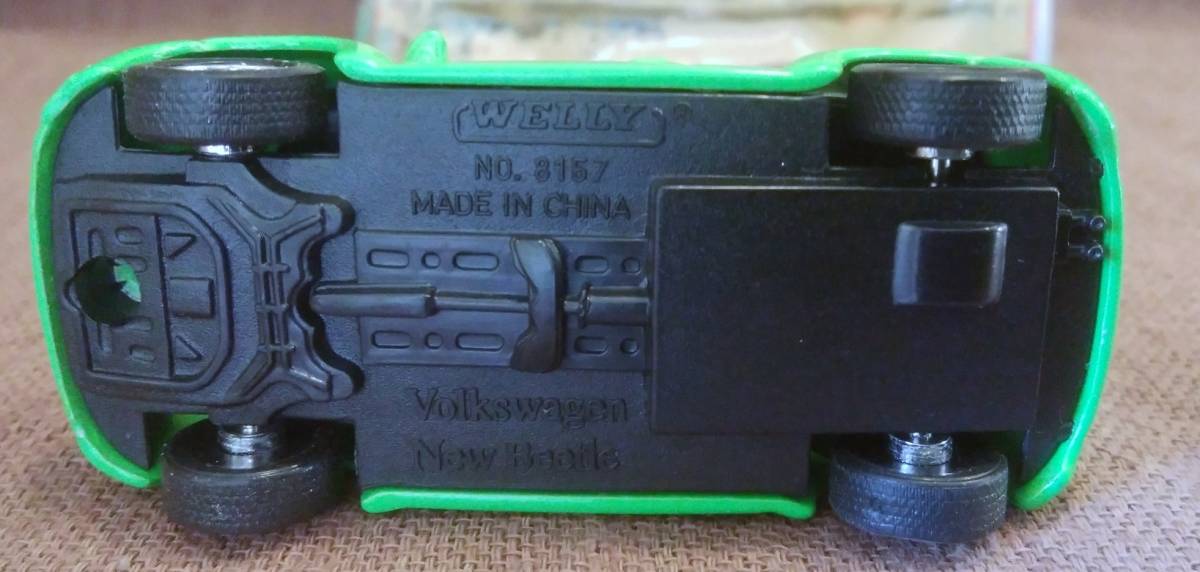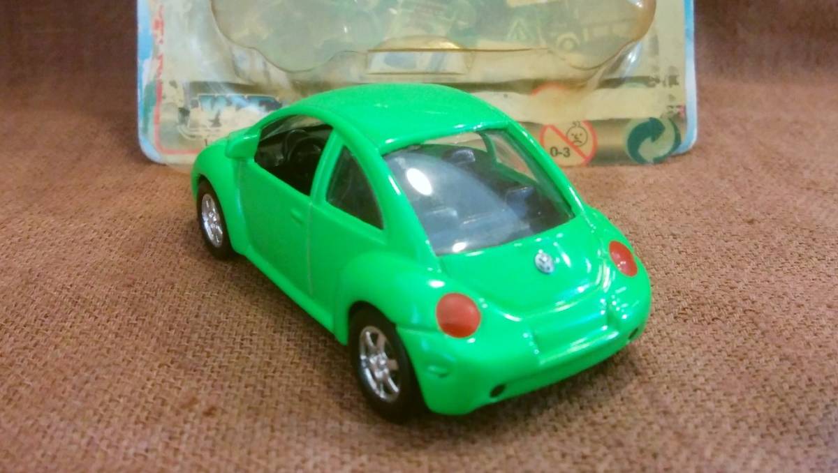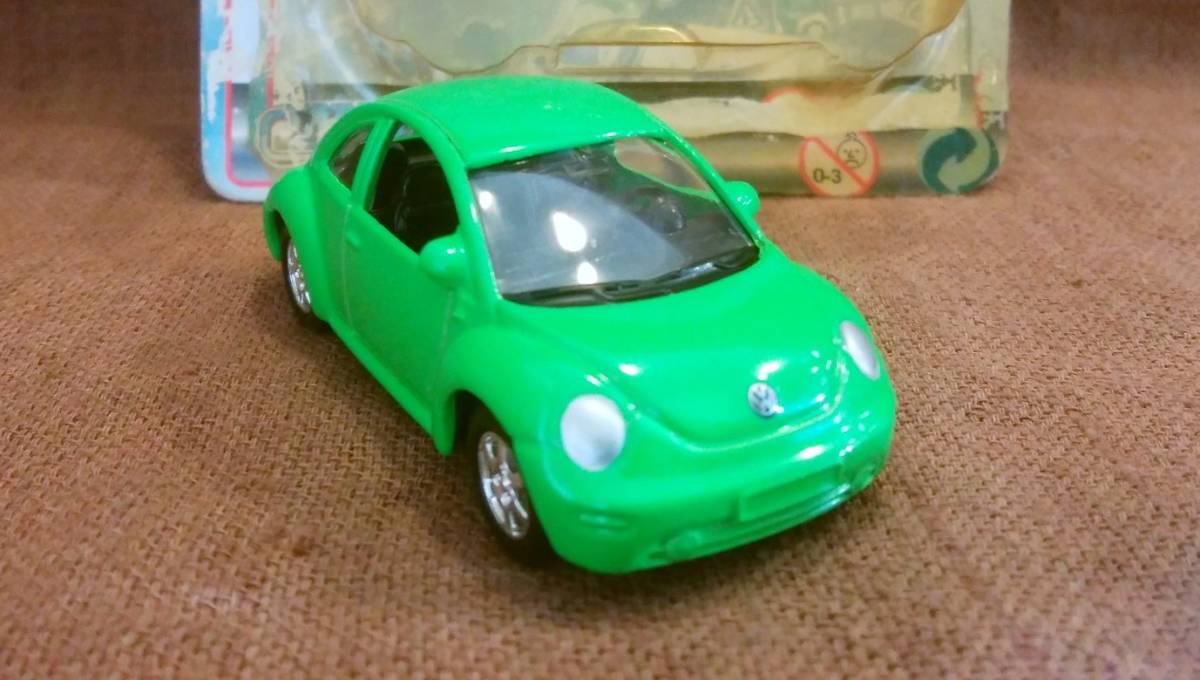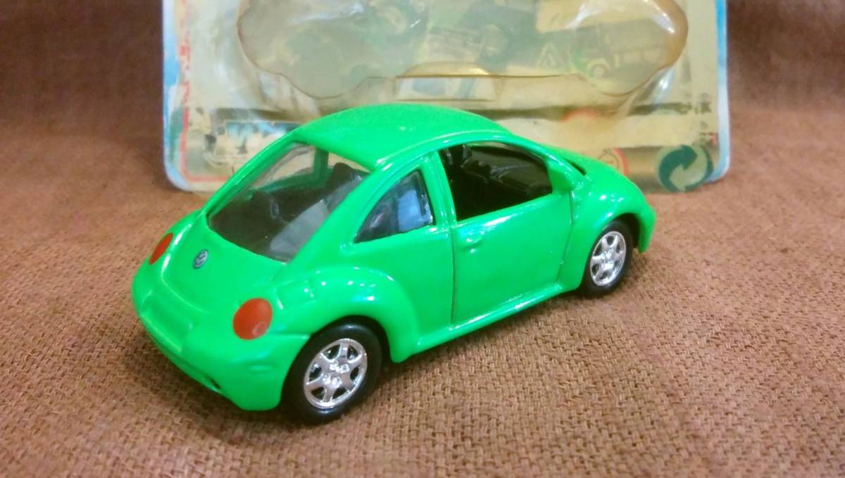 撮影時開封 ウェリー 1/60 VW NEW BEETLE フォルクスワーゲン ニュービートル ダイキャスト ミニカー ゼンマイ不良プルバック走行動作NG