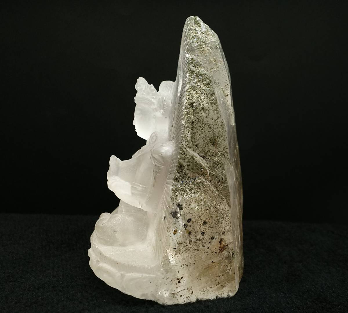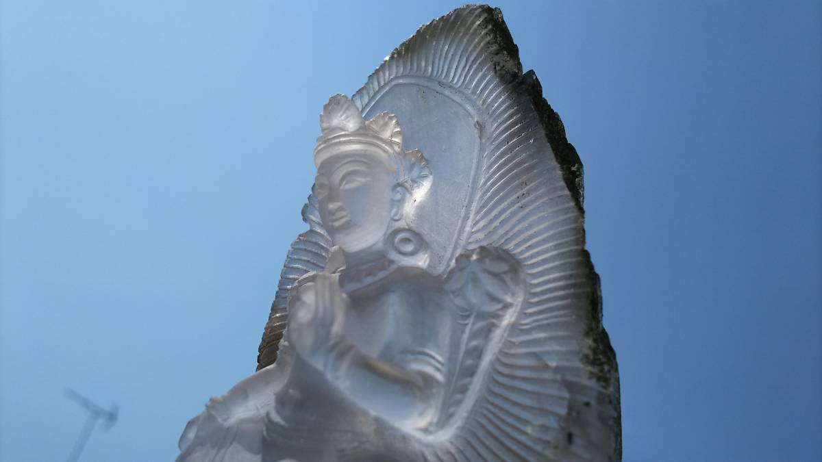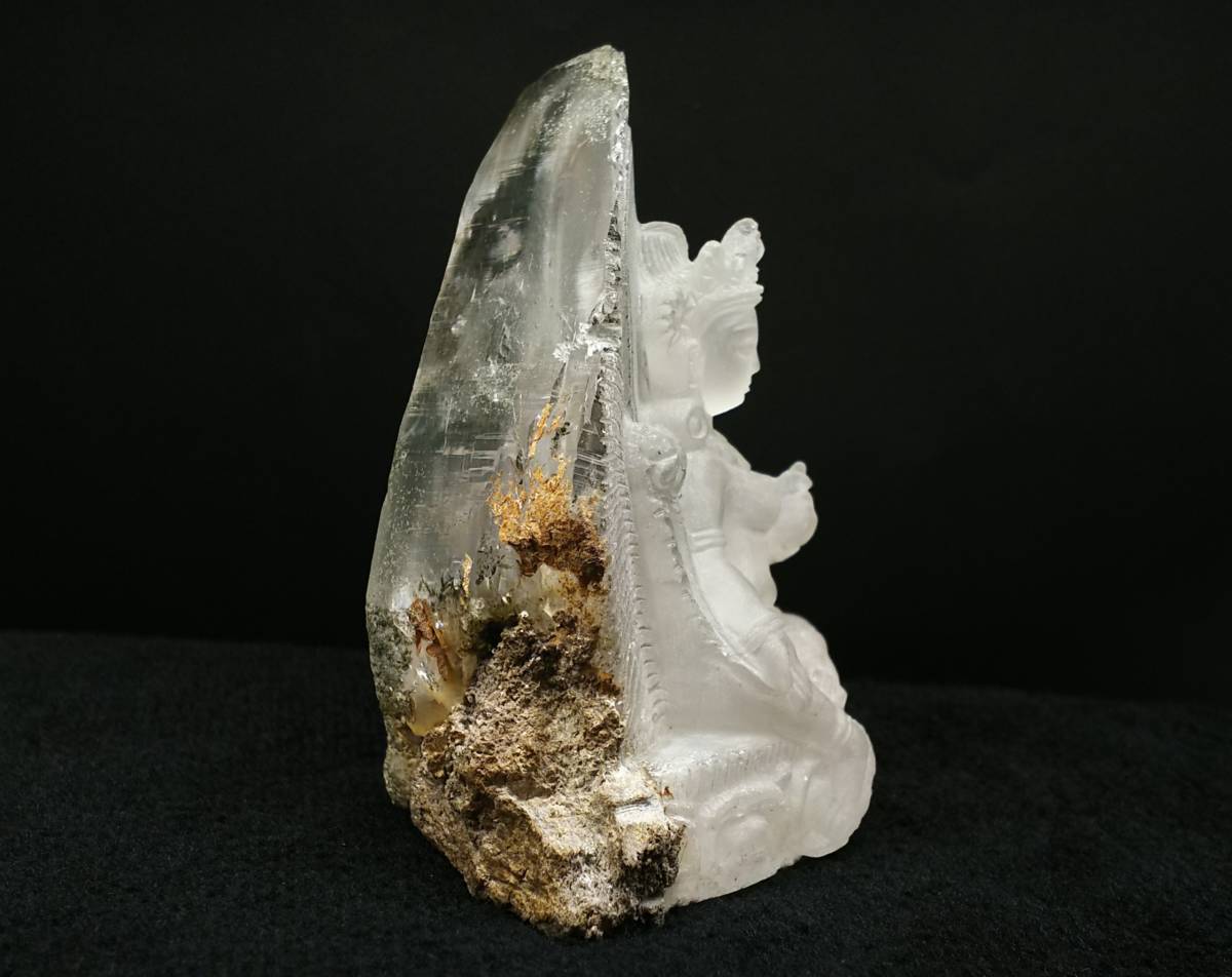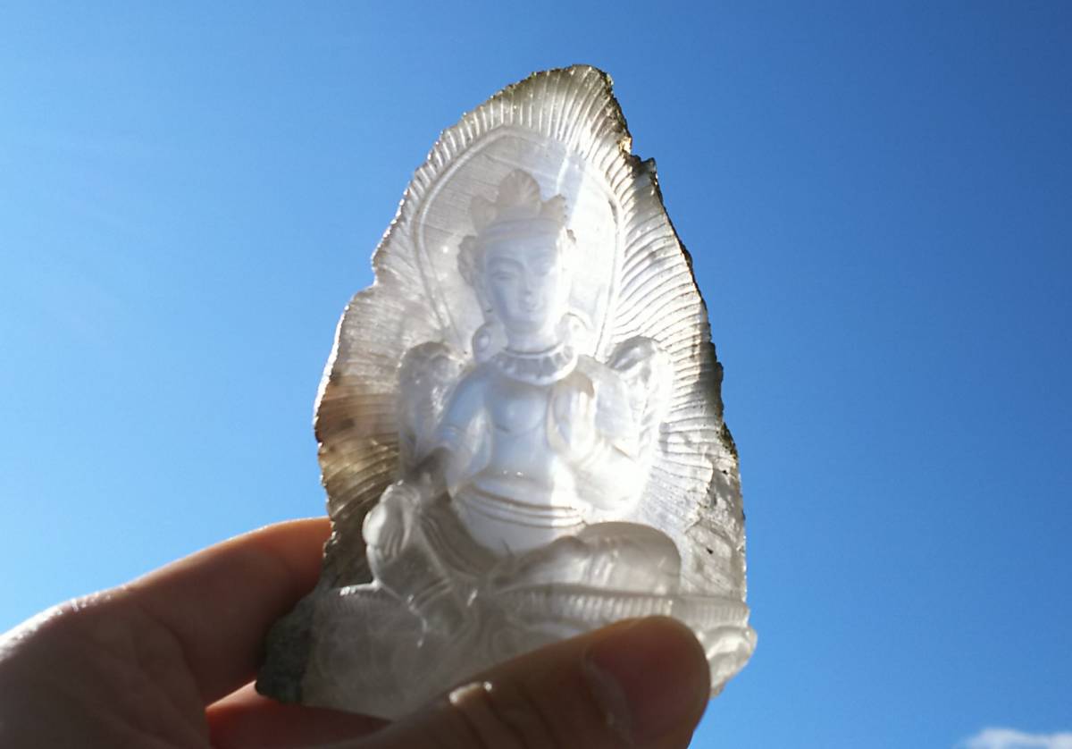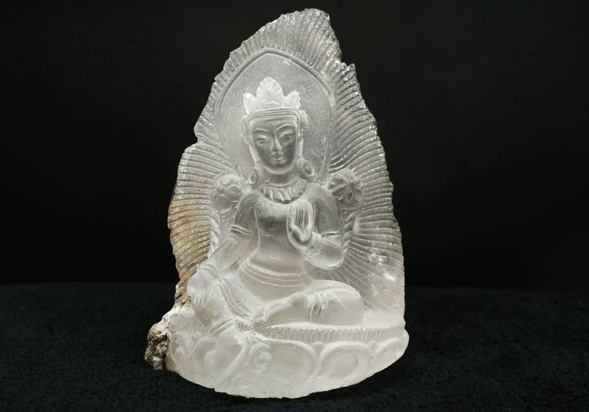 そんな緑多羅菩薩が希少なガネッシュヒマール産ヒマラヤ水晶を使用し、ネパールの彫り師により仕上げられました。